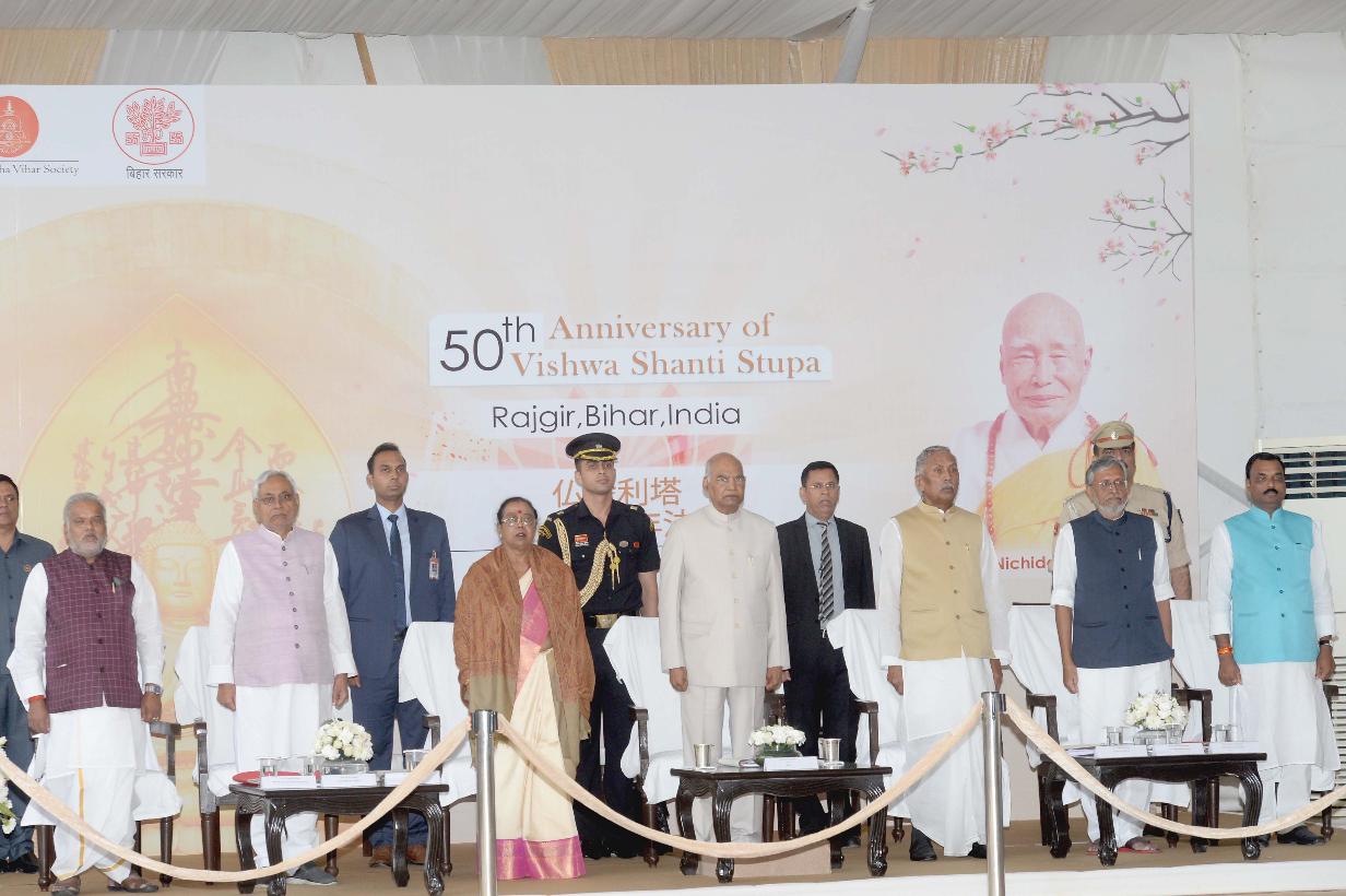 | Caption: | The President of India, Shri Ram Nath Kovind gracing the commemoration of Golden Jubilee of Vishwa Shanti Stupa, in Rajgir, Bihar on October 25, 2019. |