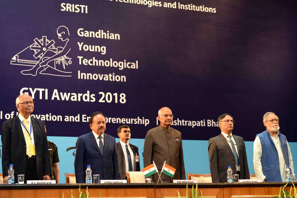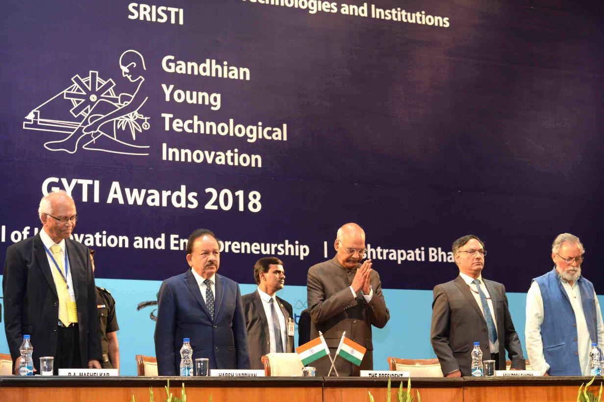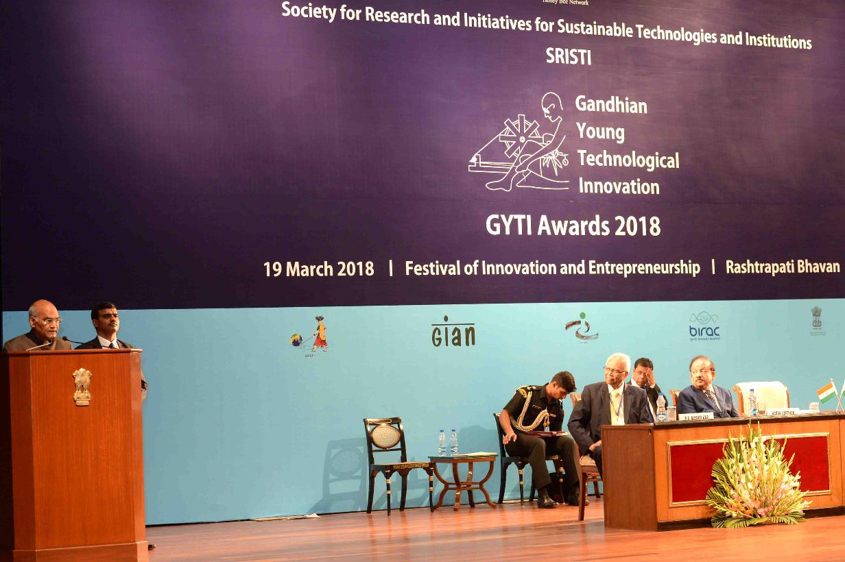 | Caption: | The President of India, Shri Ram Nath Kovind inaugurating the Festival of Innovations and Entrepreneurship (FINE) and presenting the Gandhian Young Technological Innovation (GYTI) awards, at Rashtrapati Bhavan Cultural Centre on March 19, 2018. |