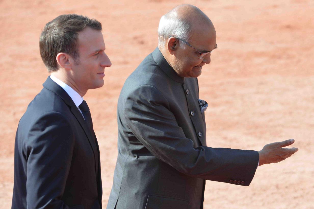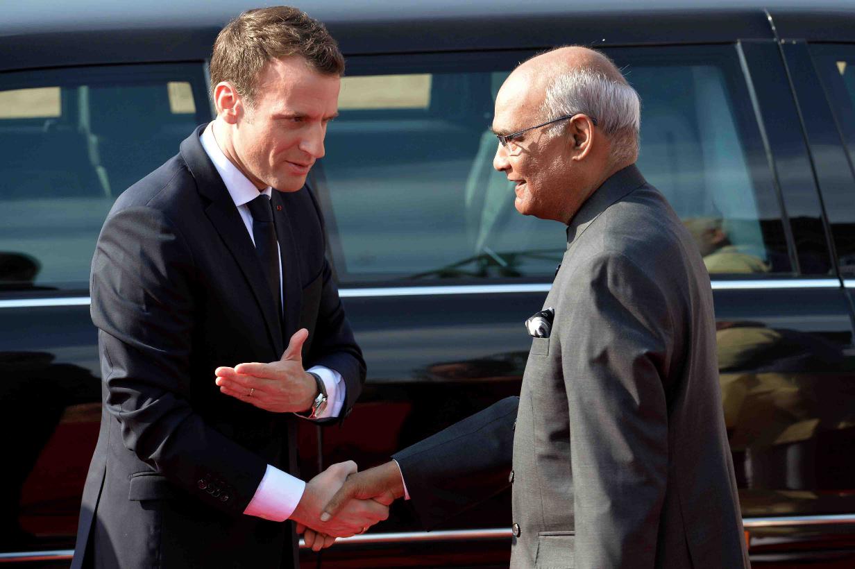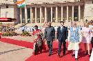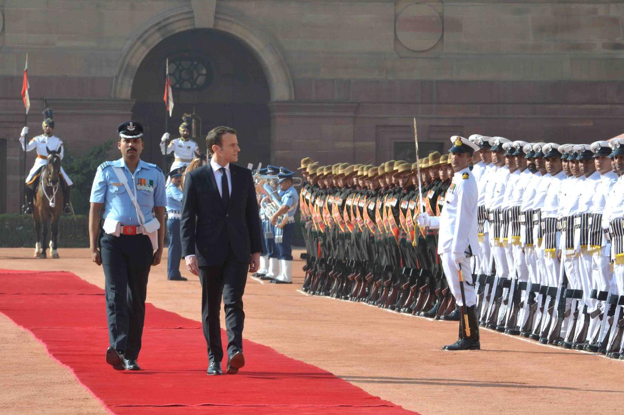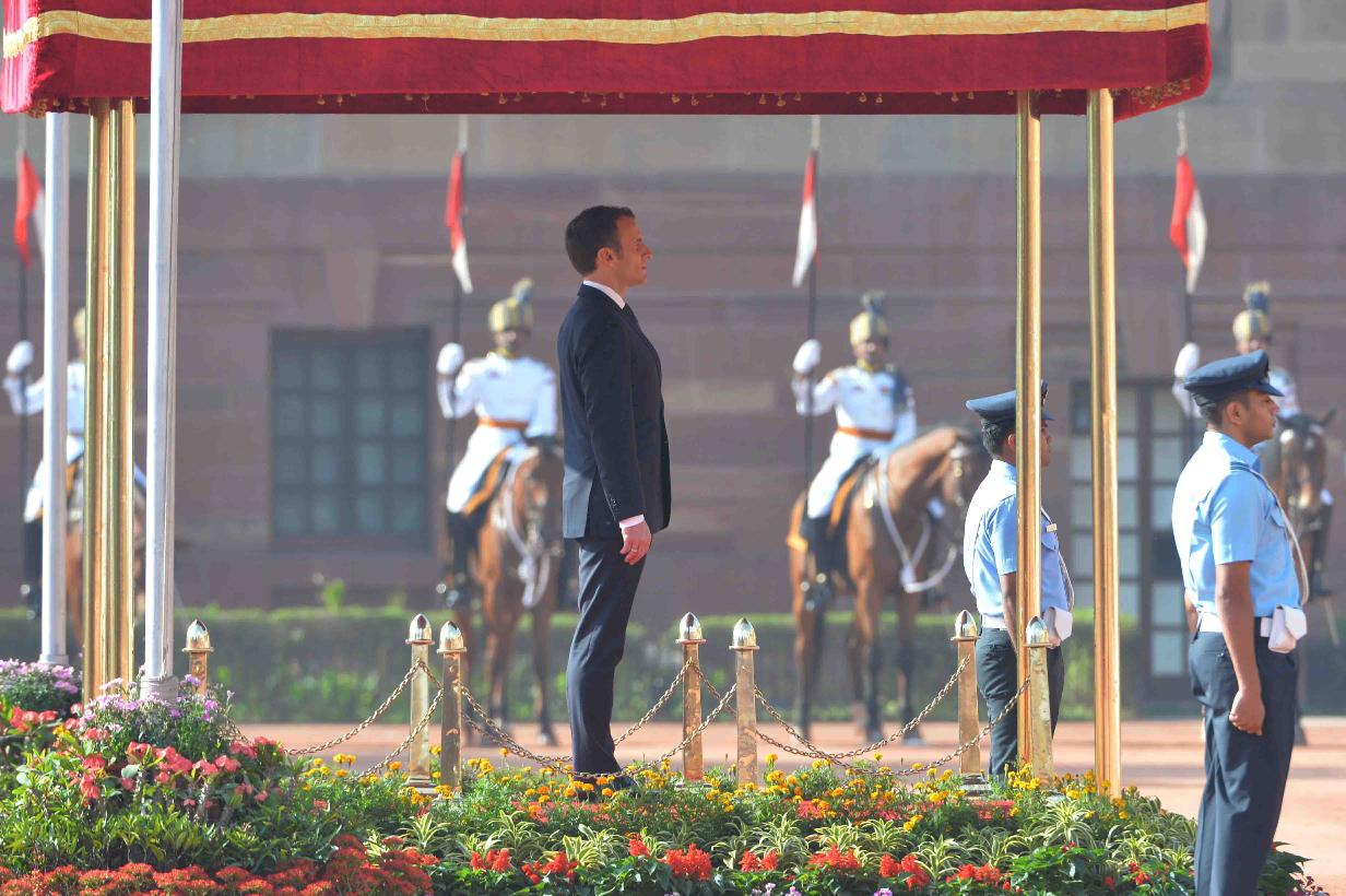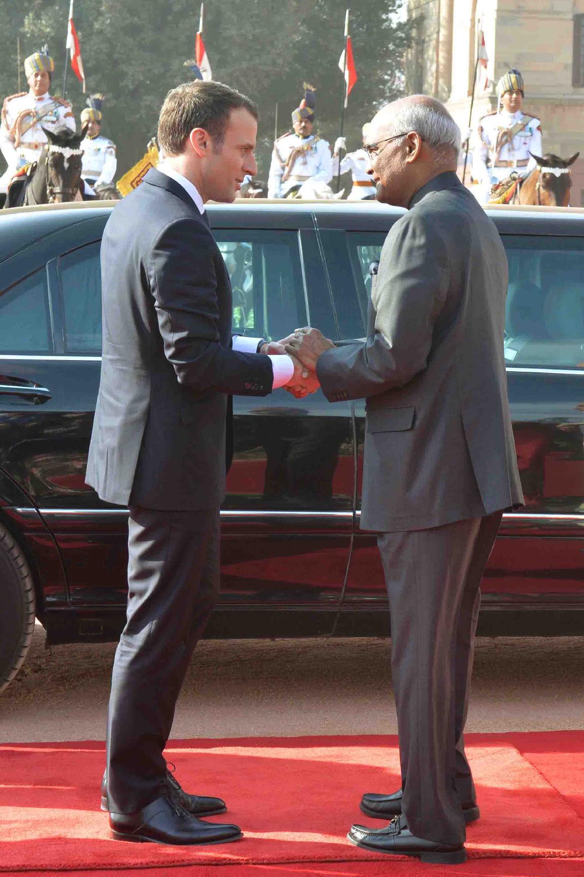 | Caption: | The President of India, Shri Ram Nath Kovind receiving the President of the French Republic, H.E. Mr. Emmanuel Macron and Mrs. Brigitte Macron during their Ceremonial Reception, at Forecourt, in Rashtrapati Bhavan on March 10, 2018. |