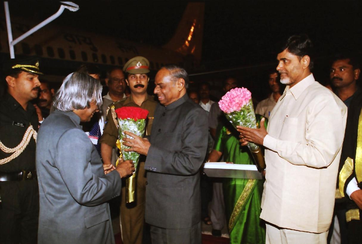 | Caption: | The President of India, Dr A P J Abdul Kalam being welcomed by the Governor of Andhra Pradesh, Shri C Rangarajan at Hyderabad Airport in Andhra Pradesh on Nov 25, 2002 |