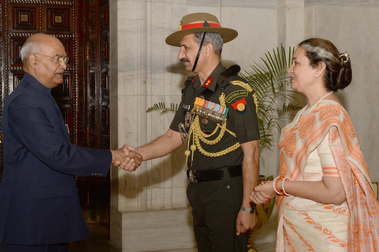 | Caption: | The President of India, Shri Ram Nath Kovind meeting with the Territorial Army Officers, JCOs and other ranks, alongwith their spouses, on the occasion of Raising Day of Territorial Army, at Rashtrapati Bhavan on October 09, 2019. |