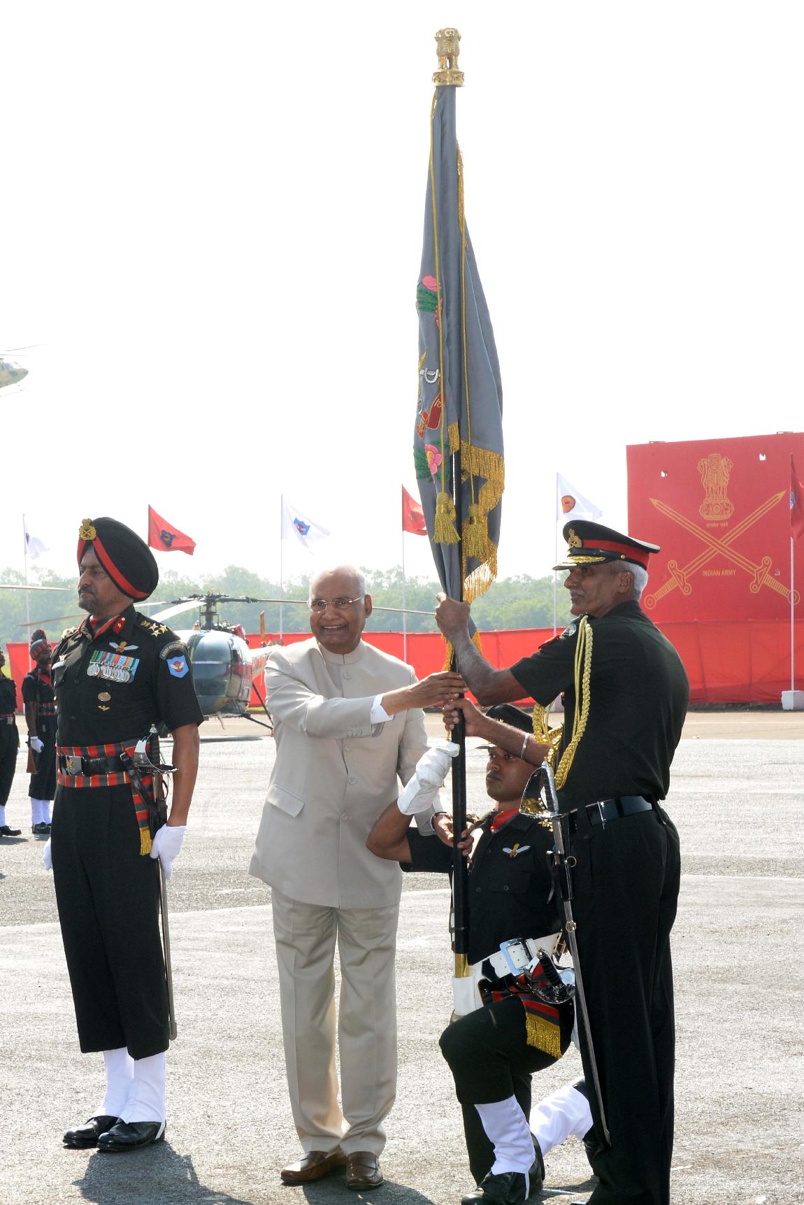 | Caption: | The President of India, Shri Ram Nath Kovind presenting Colours to the Army Aviation Corps, in Nashik, Maharashtra on October 10, 2019. |