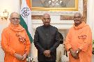 | Caption: | Swami Suprakashananda, Secretary RK Math & Ramakrishna Mission Sevashrama, Vrindaban meeting with the President of India, Shri Ram Nath Kovind, at Rashtrapati Bhavan on October 05, 2019. |