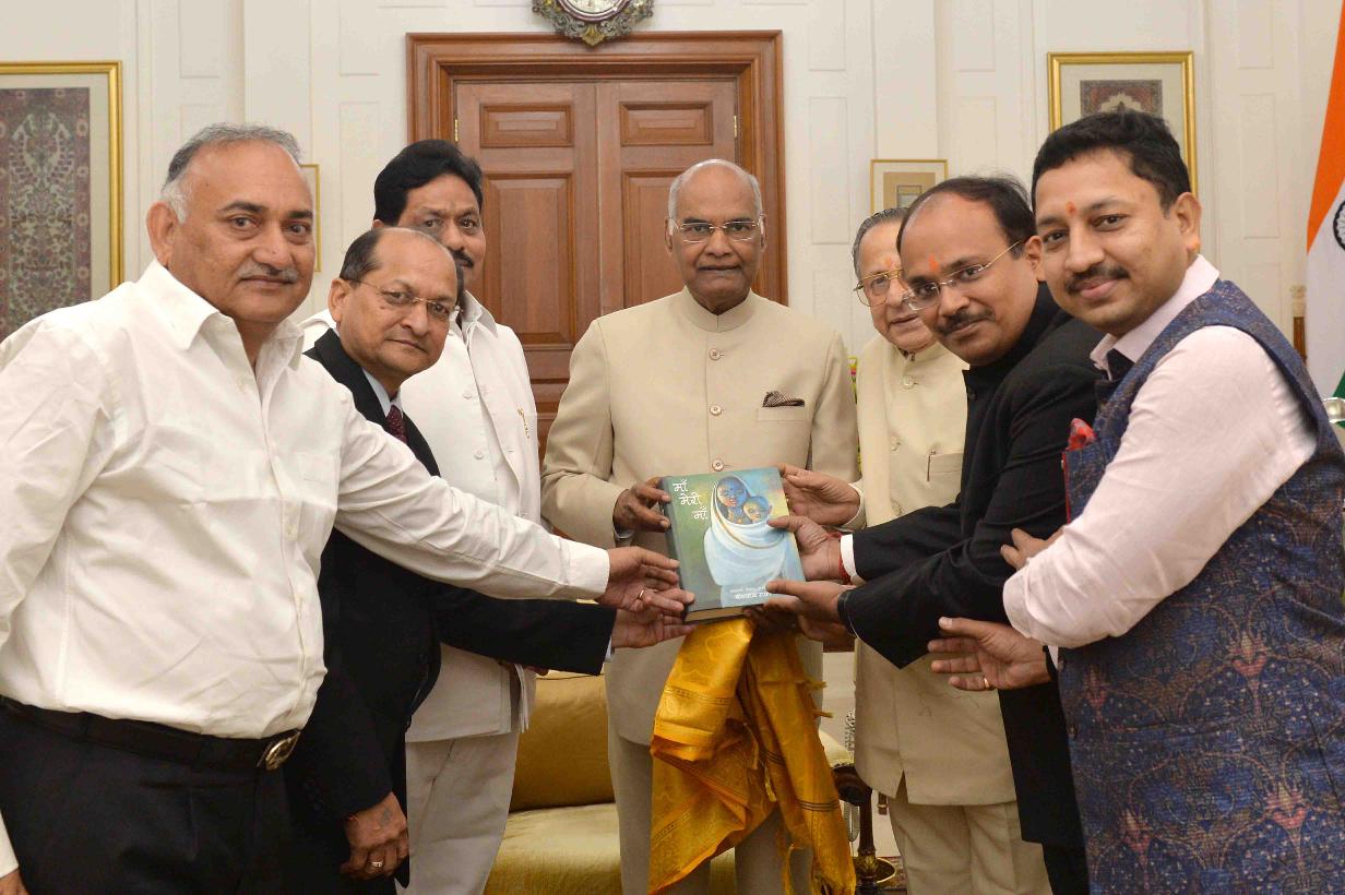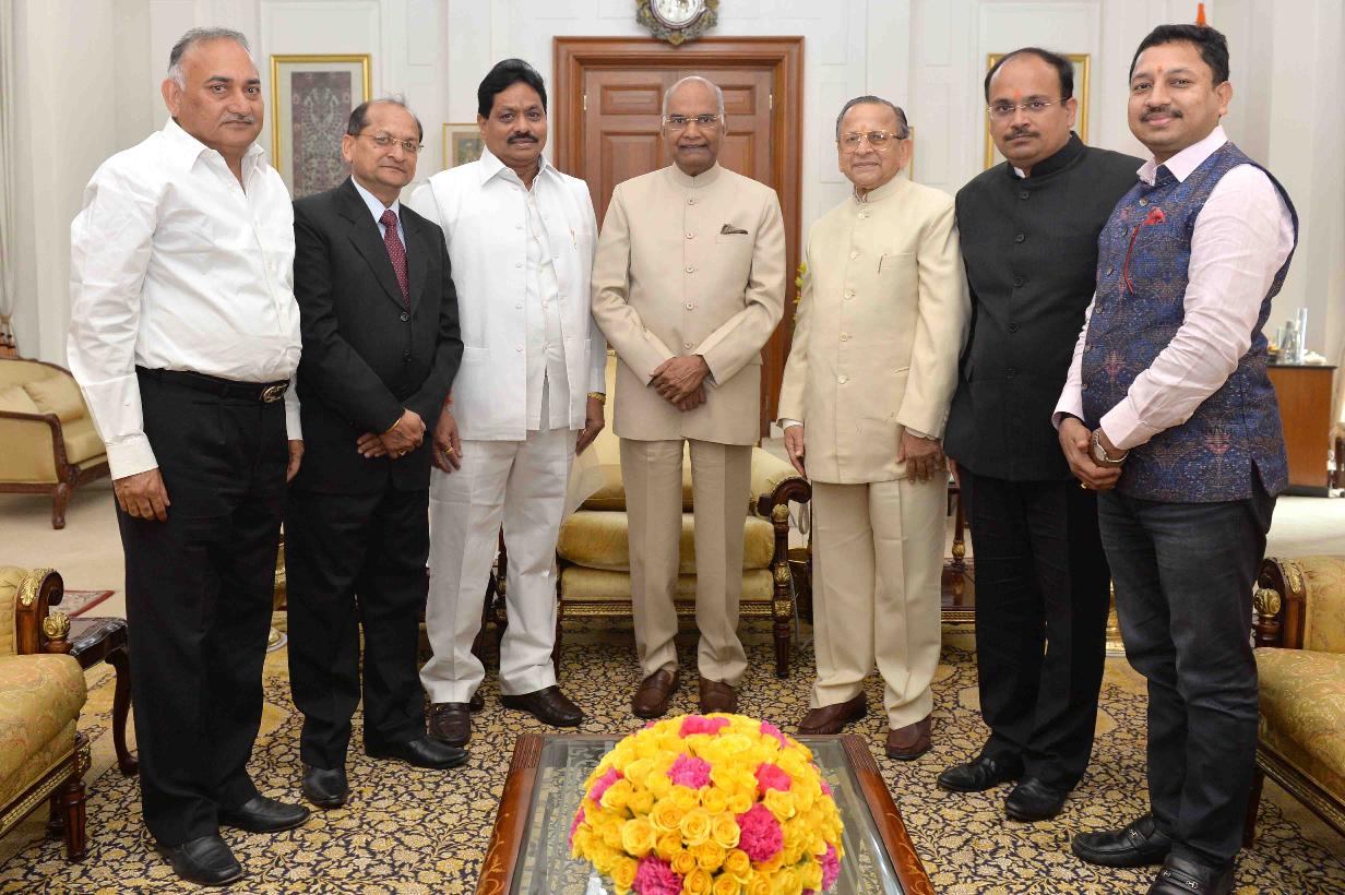 | Caption: | Shri Dilip Gandhi, MP (LS) & Chairman, Committee on Subordinate Legislation with others from Bhagwan Mahavir Janm Kalyanak Mahotsav Samiti meeting with the President of India, Shri Ram Nath Kovind, at Rashtrapati Bhavan on March 21, 2018. |