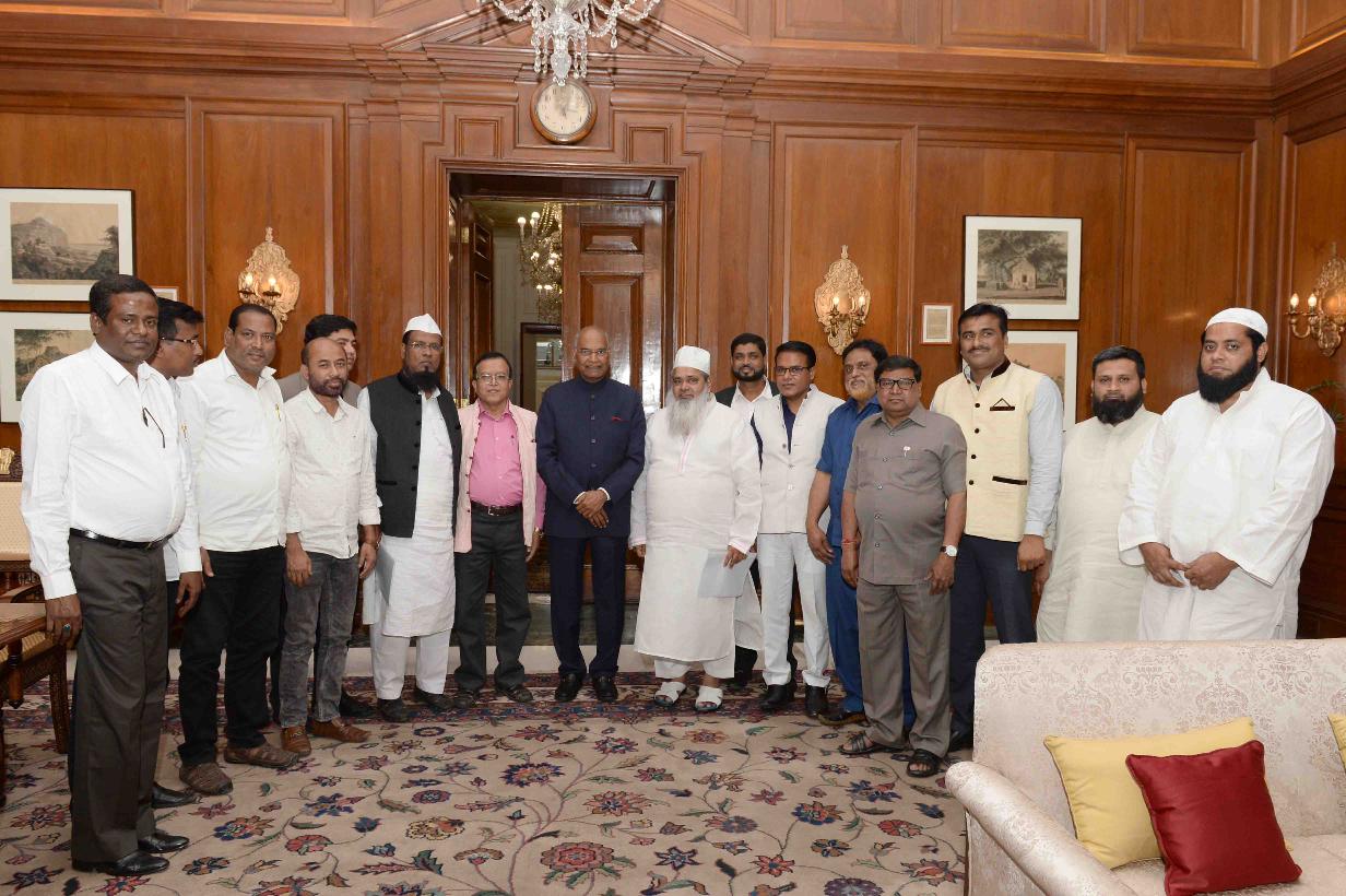 | Caption: | Shri M. Badurddin Ajmal, MP (LS) & President, All India United Democratic Front (AIUDF) along with a delegation of MPs, MLAs & Office-Bearers of the AIUDF from Assam meeting with the President of India, Shri Ram Nath Kovind, at Rashtrapati Bhavan on March 23, 2018. |