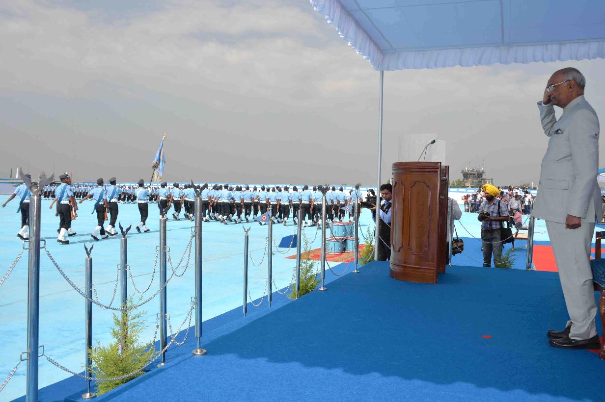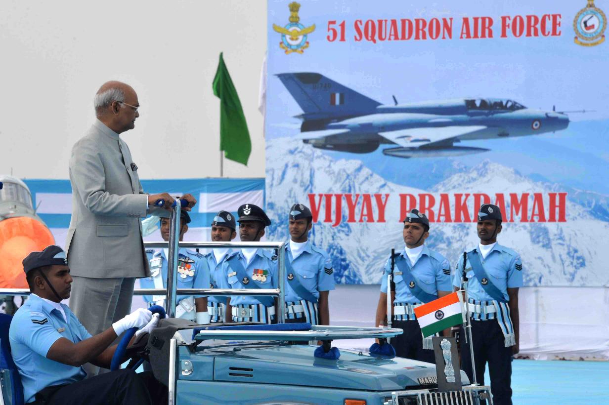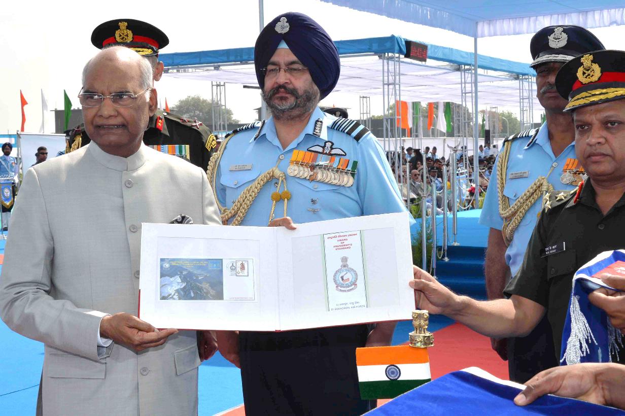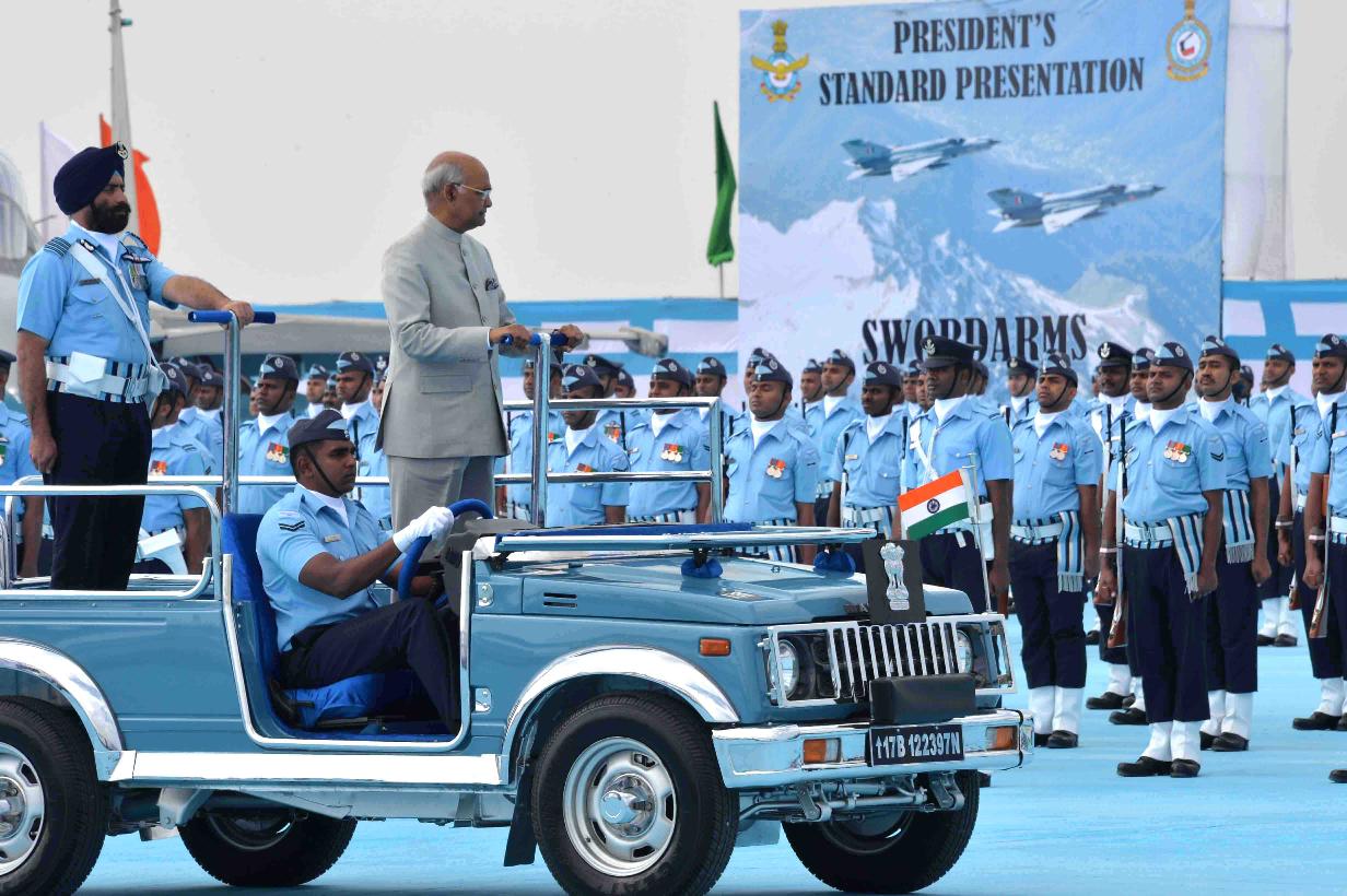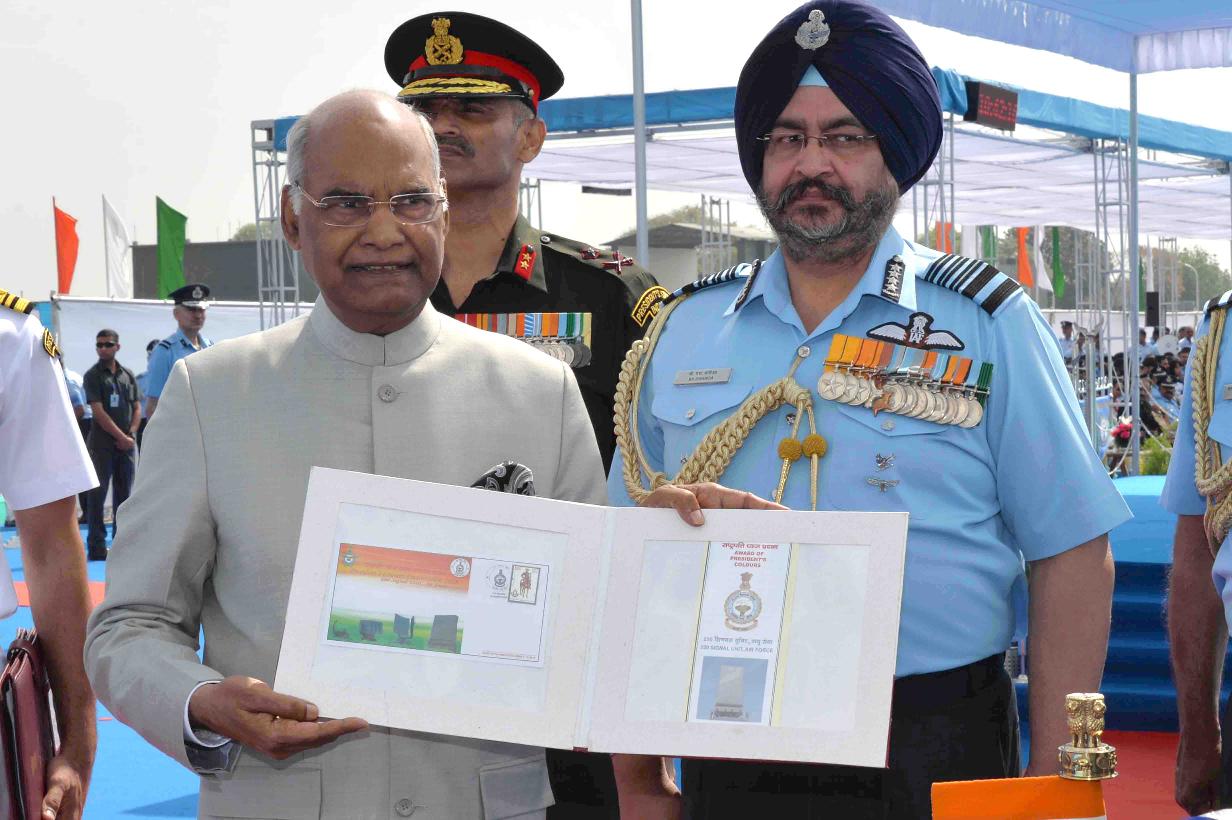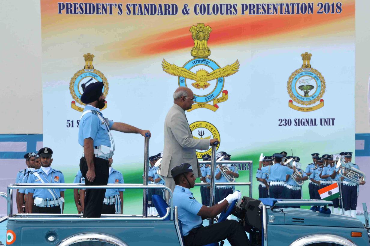 | Caption: | The President of India, Shri Ram Nath Kovind reviewing the Parade and releasing Special Covers, at the presentation of the President's Standard to 51 SQN and Colours to the 230 Signal Unit of the Indian Air Force, at Halwara, in Punjab on March 22, 2018. |