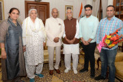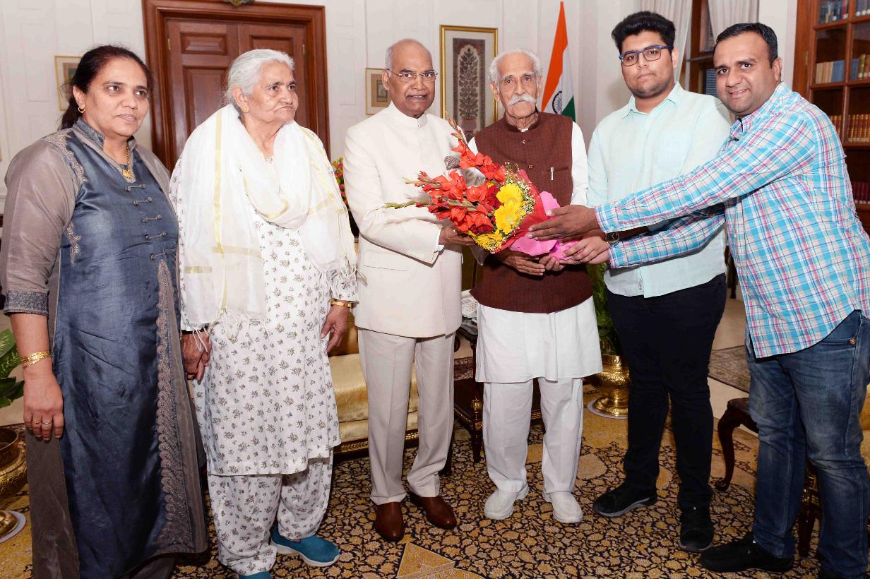 | Caption: | Vaid Mohabat Singh Dhankar (father of Shri Om Prakash Dhankar, Minister of Agriculture, Govt. of Haryana) with his family members meeting with the President of India, Shri Ram Nath Kovind, at Rashtrapati Bhavan on March 24, 2018. |