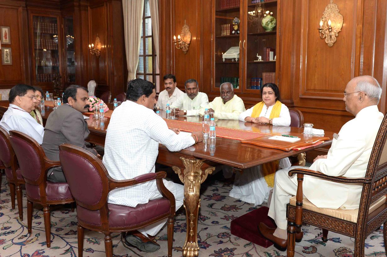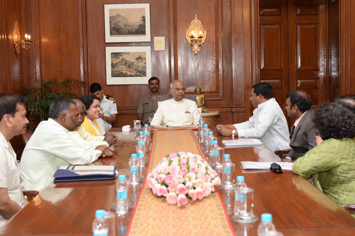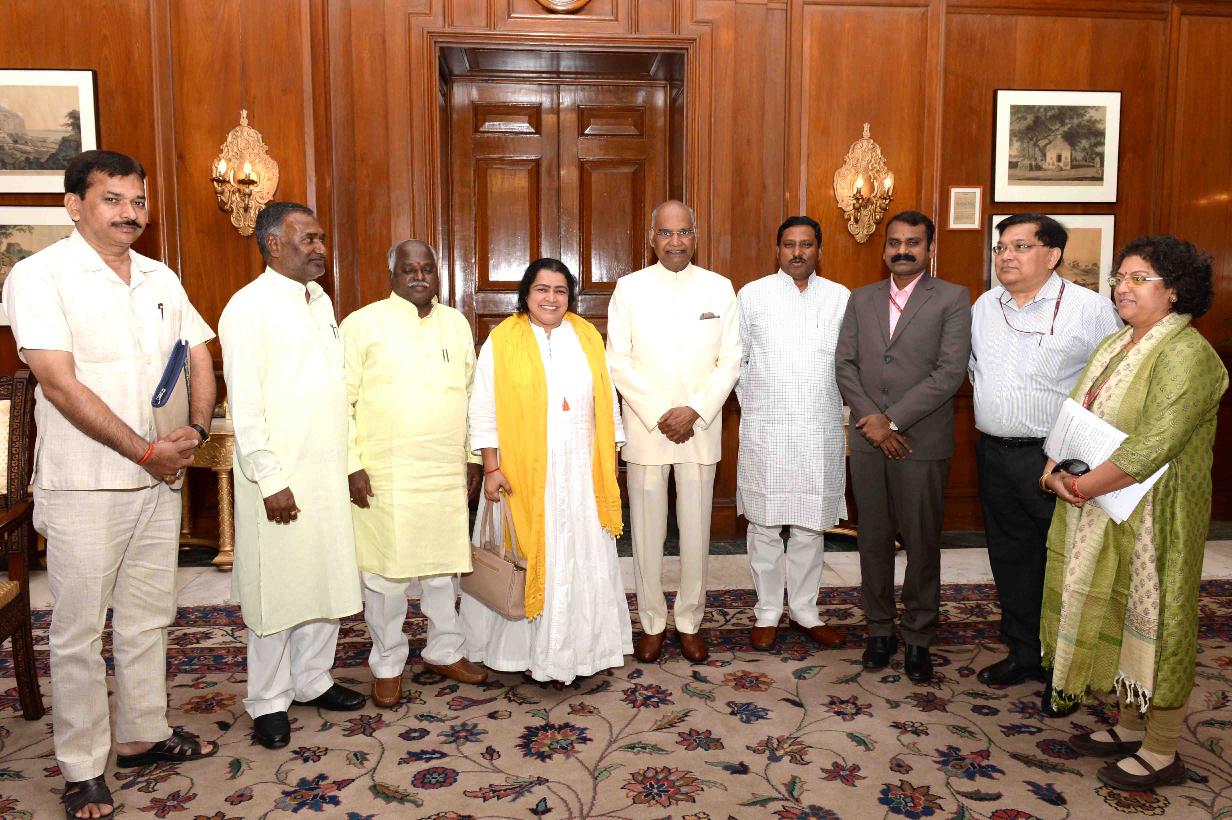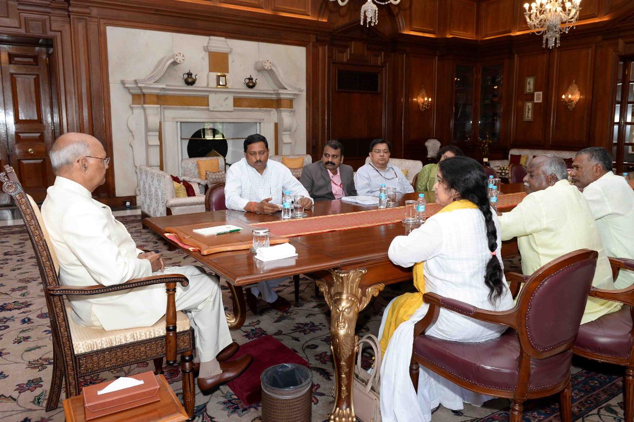 | Caption: | Dr. Ram Shankar Katheria, Chairman alongwith Shri L. Murugan, Vice Chairman and Members & officials of the National Commission for Scheduled Castes meeting with the President of India, Shri Ram Nath Kovind, at Rashtrapati Bhavan on March 28, 2018. |