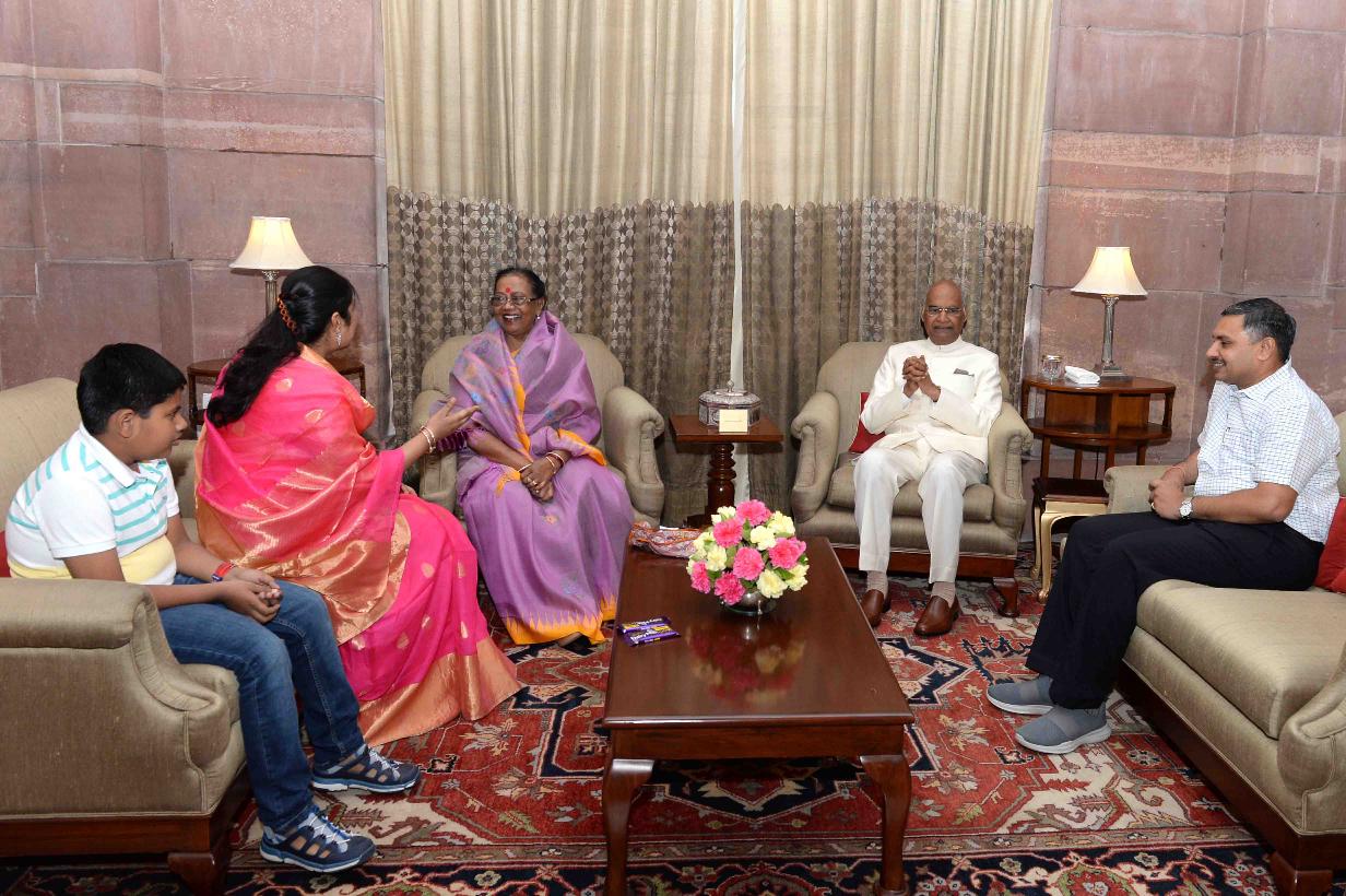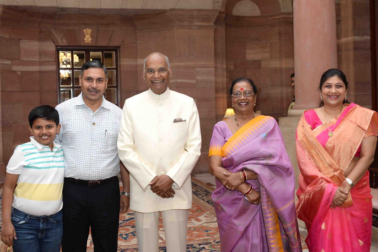 | Caption: | Shri Ashish Kumar Singh alongwith his wife Smt. Vibha Singh & Master Abhishek Singh meeting with the President of India, Shri Ram Nath Kovind, at Rashtrapati Bhavan on March 28, 2018. |