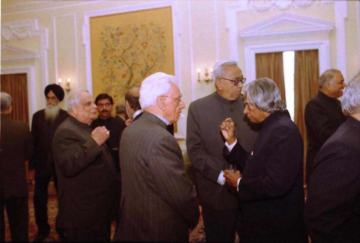 | Caption: | The President of India, Dr A P J Abdul Kalam at the Lunch Hosted by the Vice President of India, Shri Bhairon Singh Shekhawat at the Hyderabad House in New Delhi on Jan 11, 2003 |