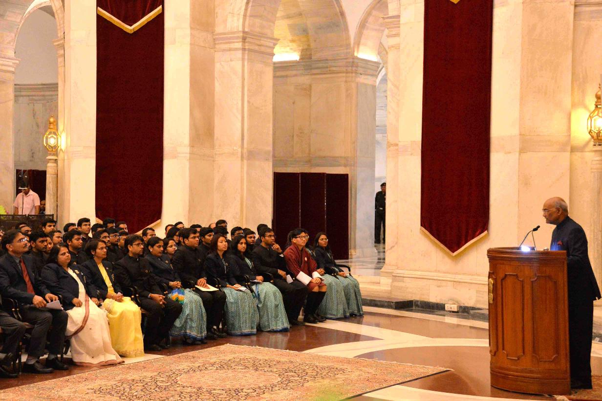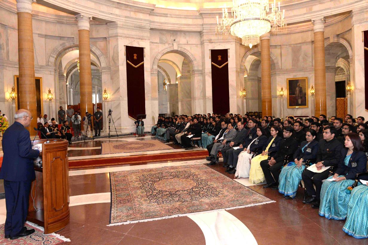 | Caption: | The President of India, Shri Ram Nath Kovind meeting with the Officer Trainees of 71st Batch of Indian Revenue Service from National Academy of Direct Taxes, Nagpur, at Rashtrapati Bhavan on March 23, 2018. |
