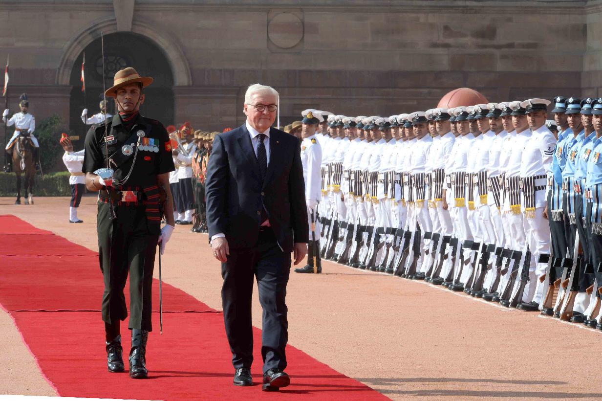 | Caption: | The President of India, Shri Ram Nath Kovind receiving the President of the Federal Republic of Germany, H.E. Dr. Frank-Walter Steinmeier and Mrs. Elke Budenbender, at the Ceremonial Reception, at Rashtrapati Bhavan on March 24, 2018. |