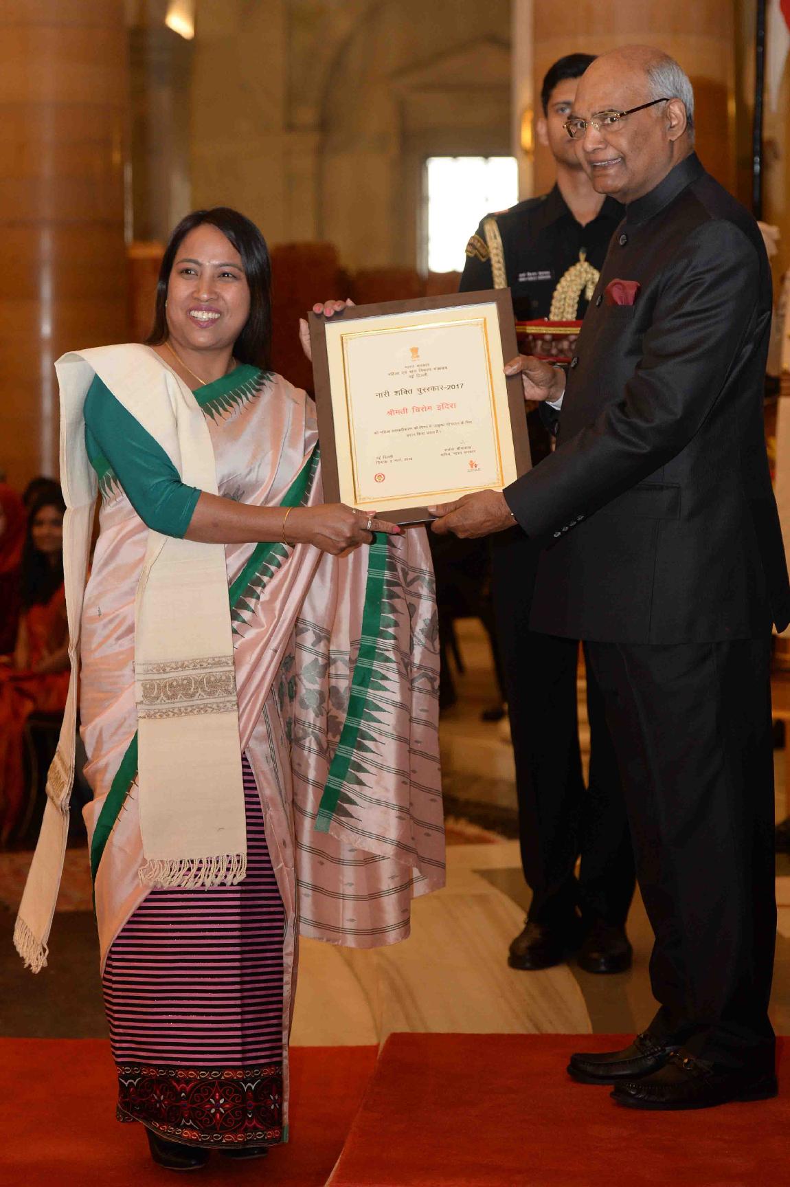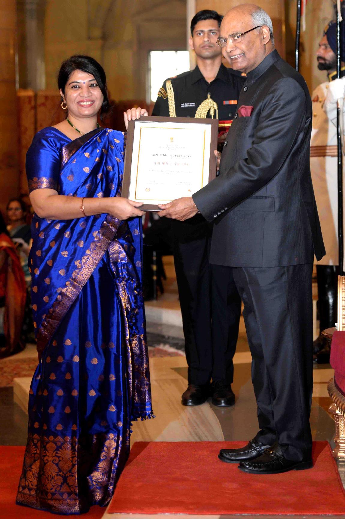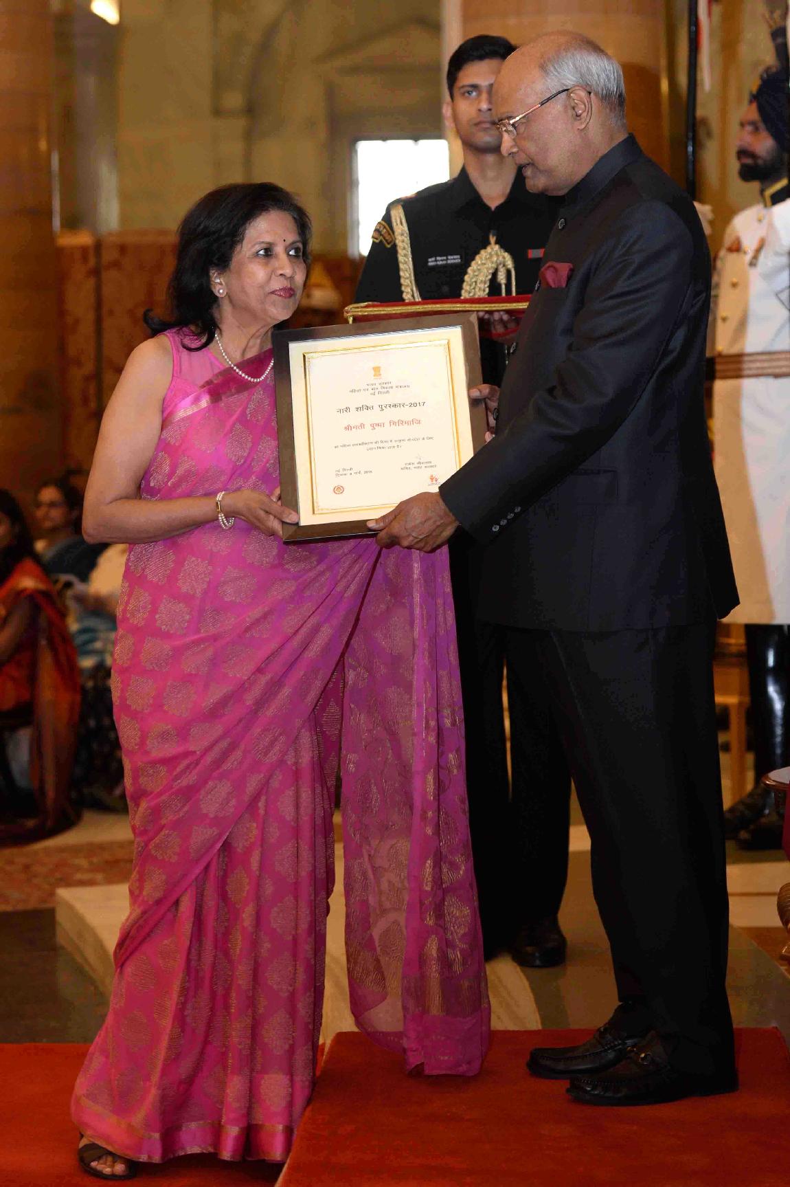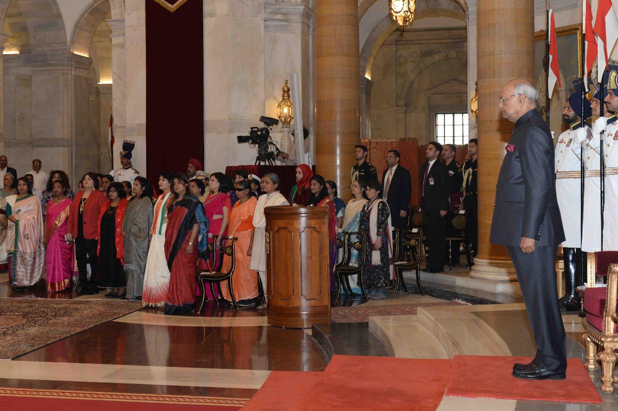 | Caption: | The President of India, Shri Ram Nath Kovind presenting the Nari Shakti Puruskars on the occasion of International Women's Day, at Rastrapati Bhavan on March 08, 2018. |
