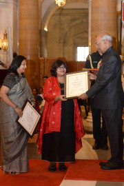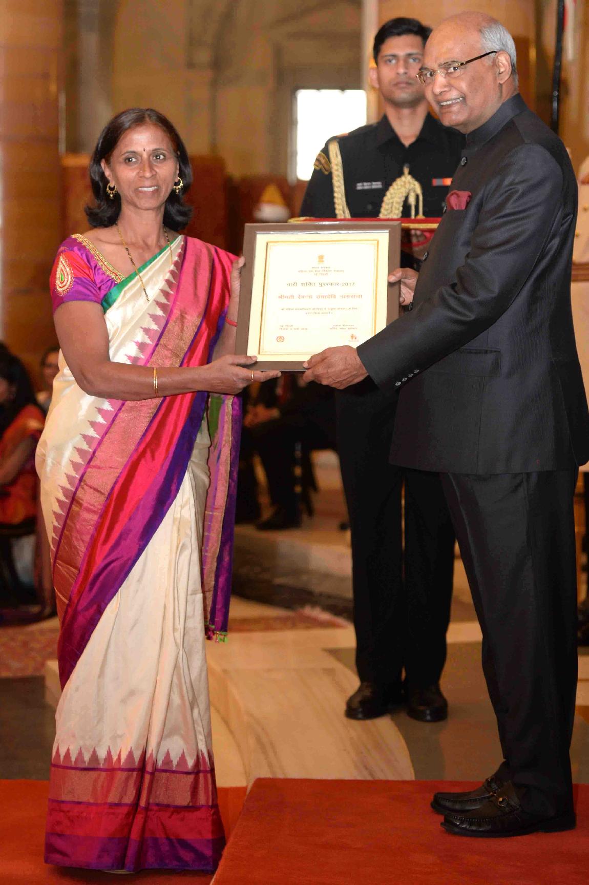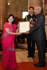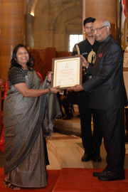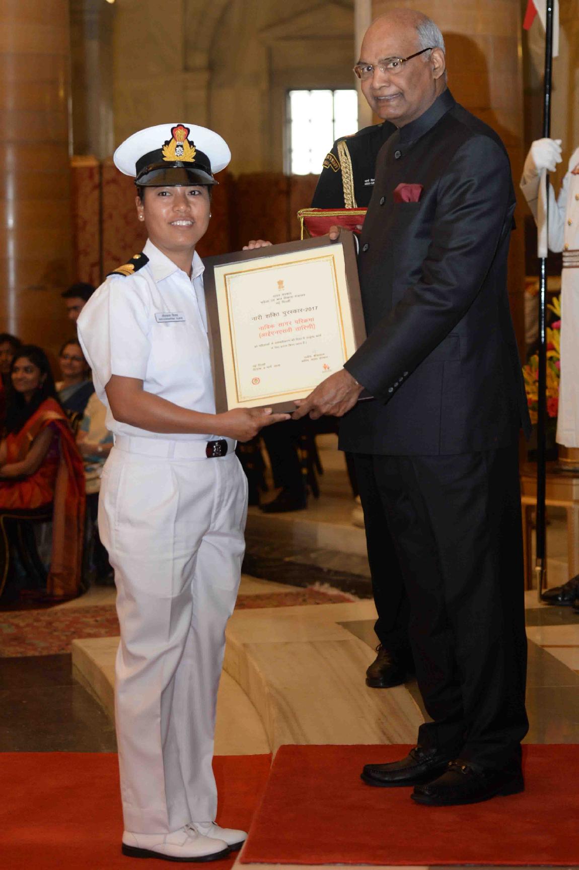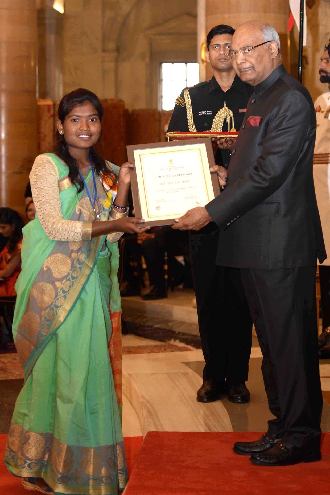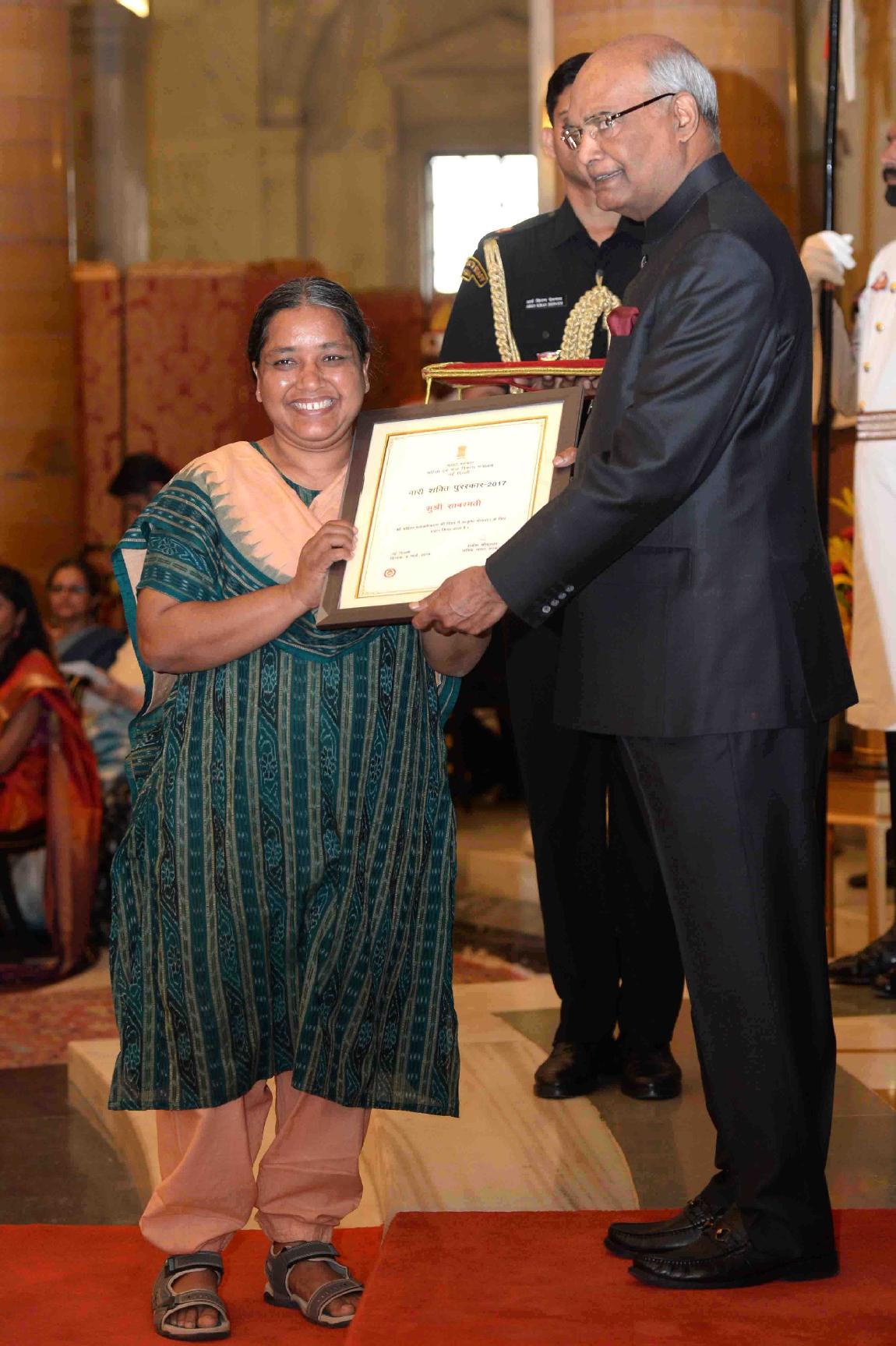 | Caption: | The President of India, Shri Ram Nath Kovind presenting the Nari Shakti Puruskars on the occasion of International Women's Day, at Rastrapati Bhavan on March 08, 2018. |