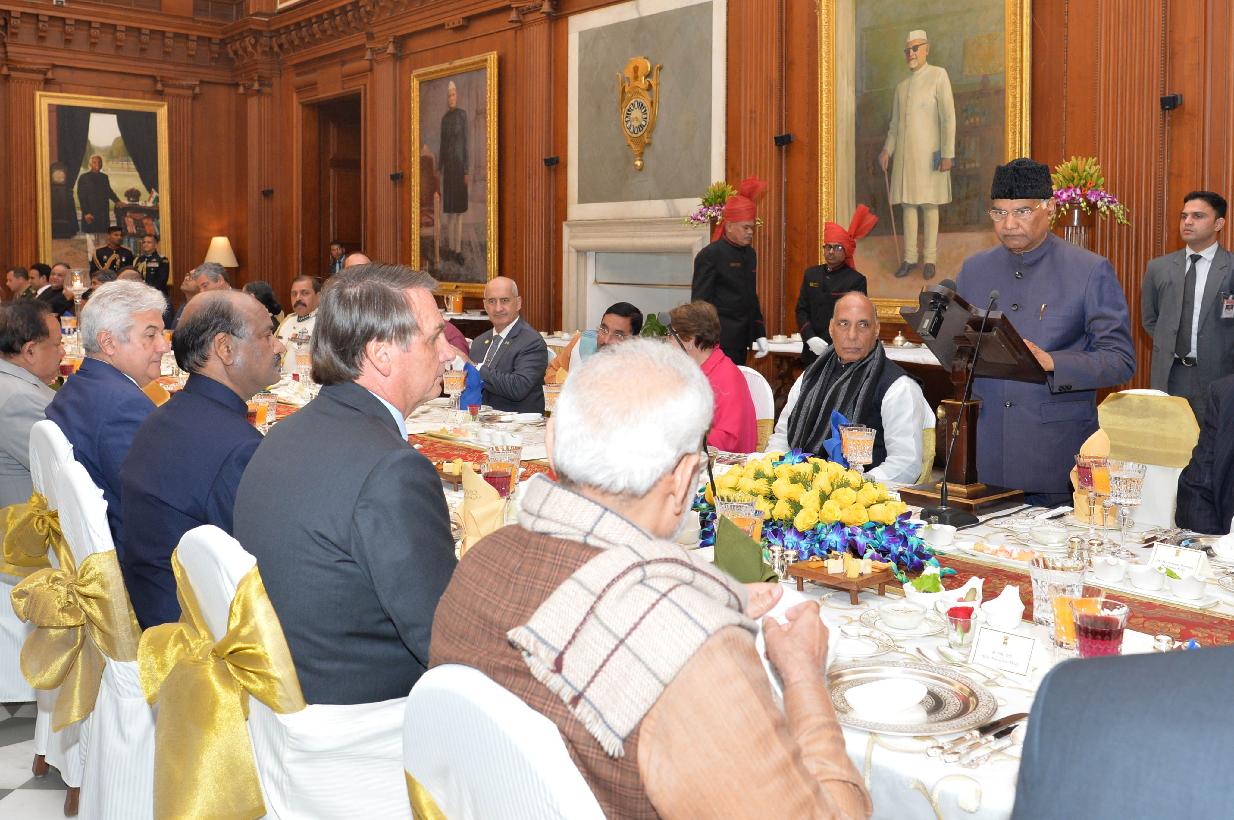 | Caption: | The President of India, Shri Ram Nath Kovind hosting a banquet in honour of the President of the Federative Republic of Brazil, H.E. Mr. Jair Bolsonaro, at Rashtrapati Bhavan on January 25, 2020. |