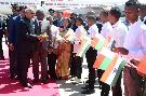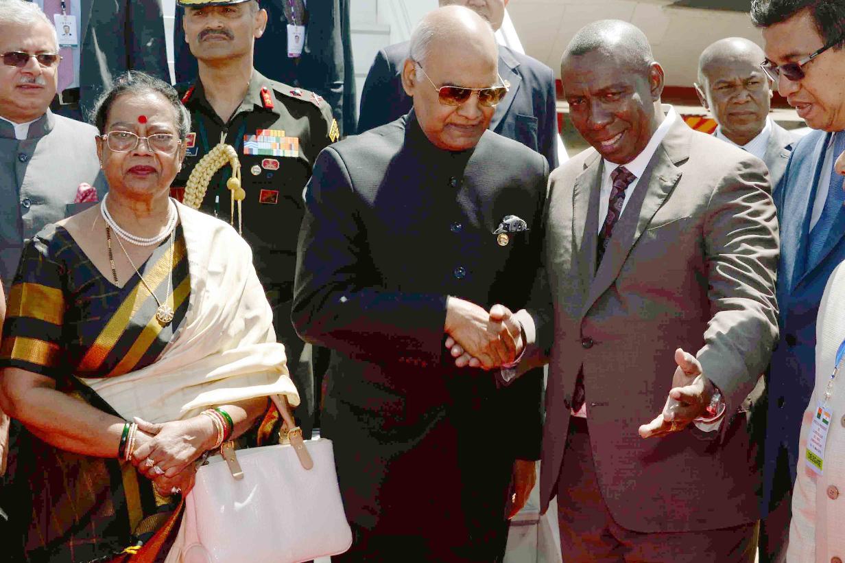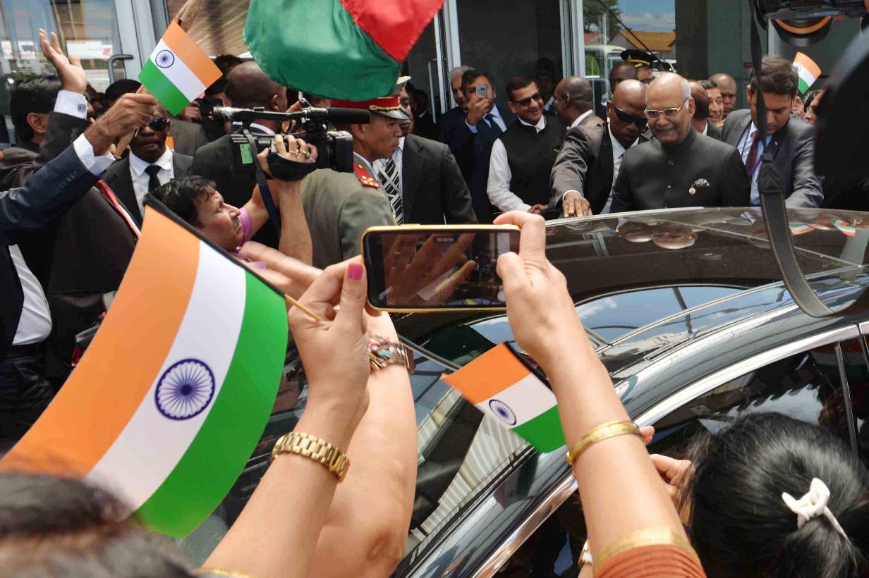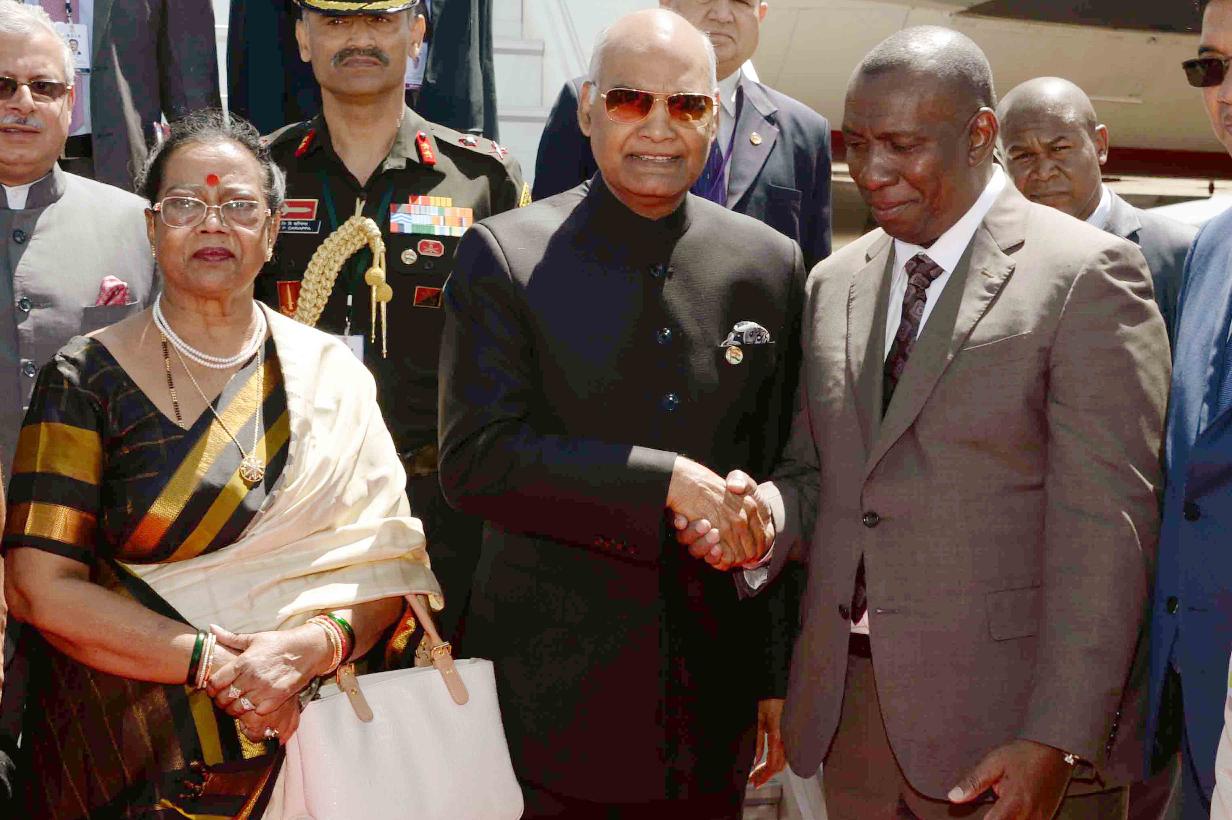 | Caption: | The President of India, Shri Ram Nath Kovind and the First Lady of India, Smt. Savita Kovind being received by the Prime Minister of Madagascar, H.E. Mr. Olivier Mahafaly Solonandrasana on their arrival, at Ivato International Airport, Antananarivo, in Madagascar on March 14, 2018. |