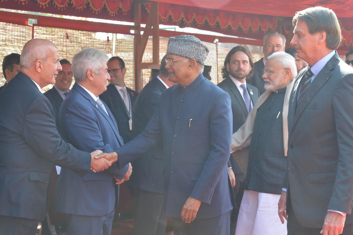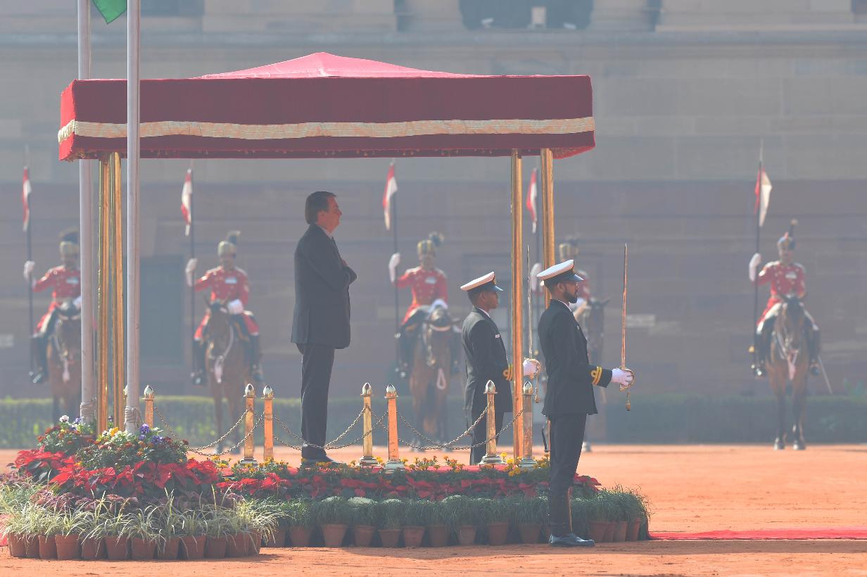 | Caption: | The President of India, Shri Ram Nath Kovind accords a ceremonial welcome to the President of the Federative Republic of Brazil, H.E. Mr. Jair Bolsonaro, at Rashtrapati Bhavan on January 25, 2020. |