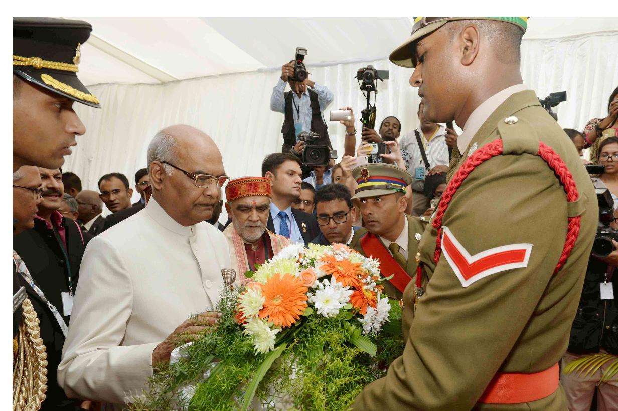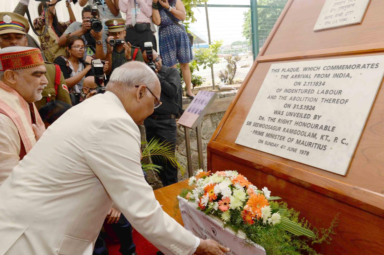 | Caption: | The President of India, Shri Ram Nath Kovind visiting Aapravasi Ghat World Heritage Site, at Port Louis, in Mauritius on March 12, 2018. |