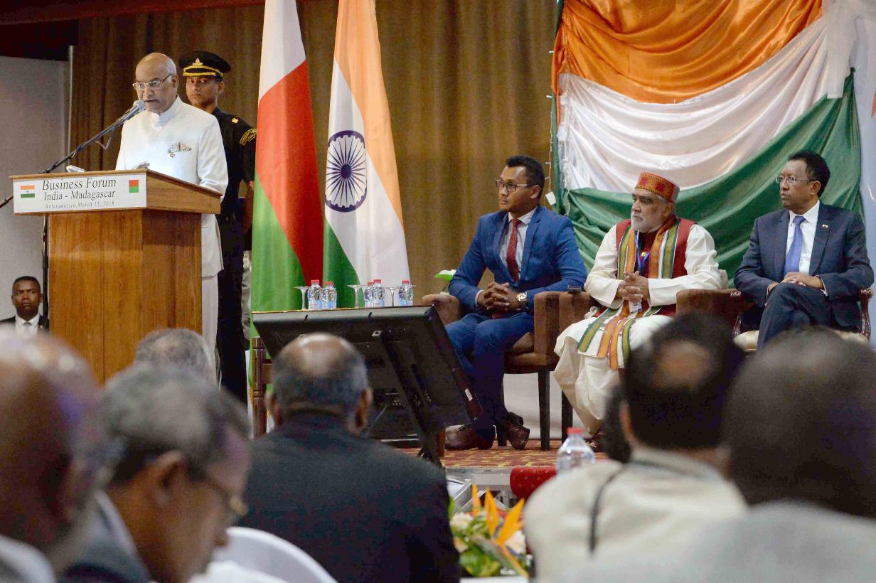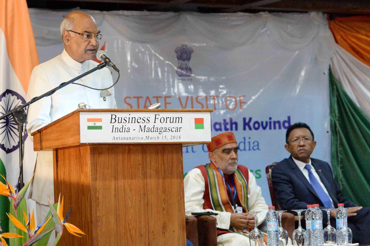 | Caption: | The President of India, Shri Ram Nath Kovind addressing the India-Madagascar Business Forum, at Antananarivo, in Madagascar on March 15, 2018. |