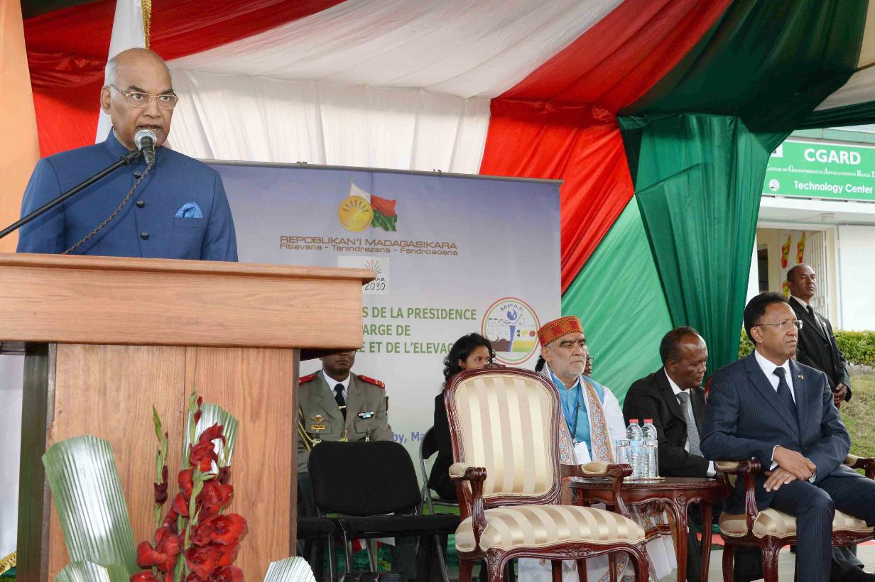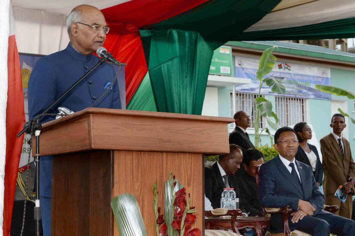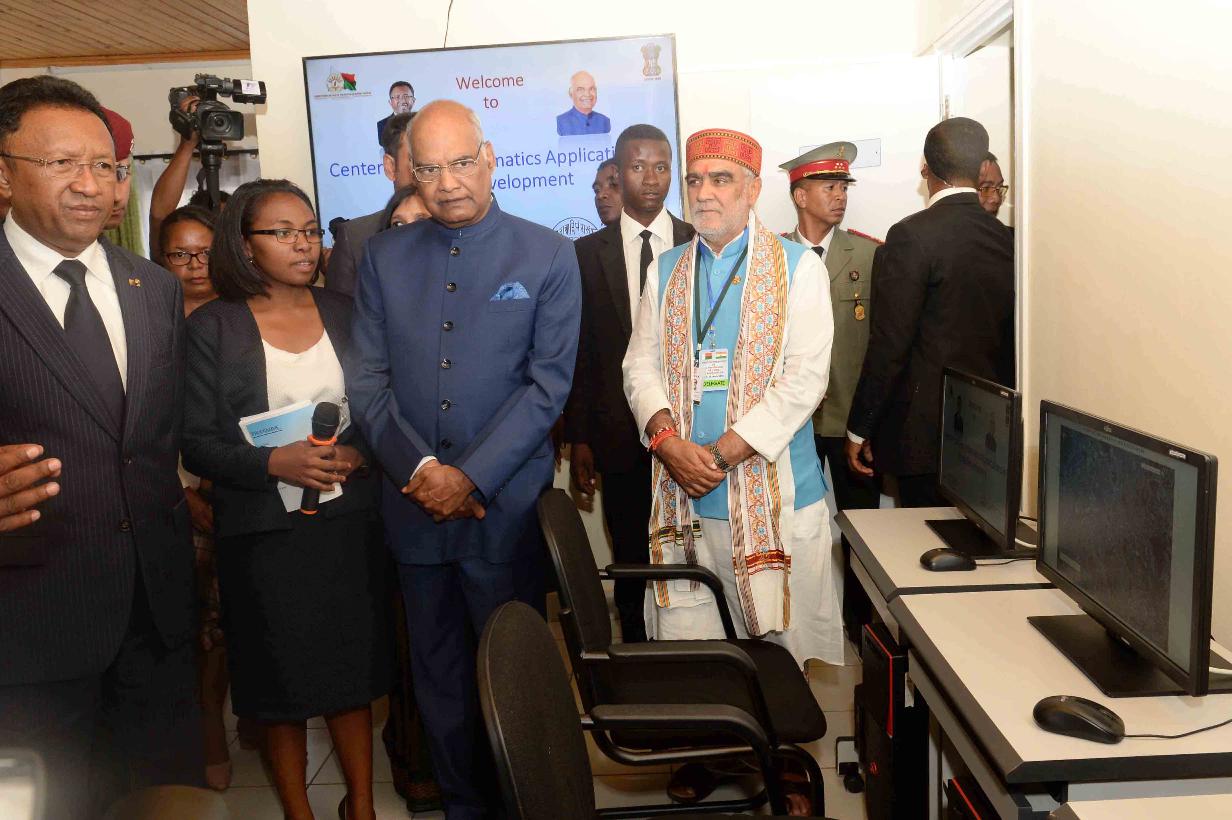 | Caption: | The President of India, Shri Ram Nath Kovind and the President of Madagascar, H.E. Mr. Hery Rajaonarimampianina inaugurating the Centre for Geoinformatics Application in Rural Development (CGARD) Technology Centre, at Antananarivo, in Madagascar on March 14, 2018. |