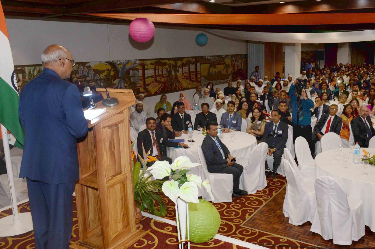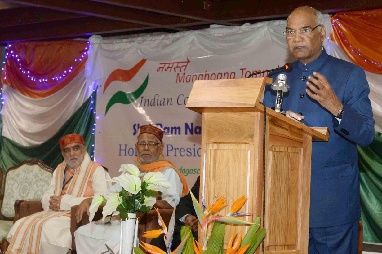 | Caption: | The President of India, Shri Ram Nath Kovind addressing at the Indian Community Reception hosted by the Indian Ambassador in Madagascar, Shri Subir Dutta, at Antananarivo, in Madagascar on March 14, 2018. |