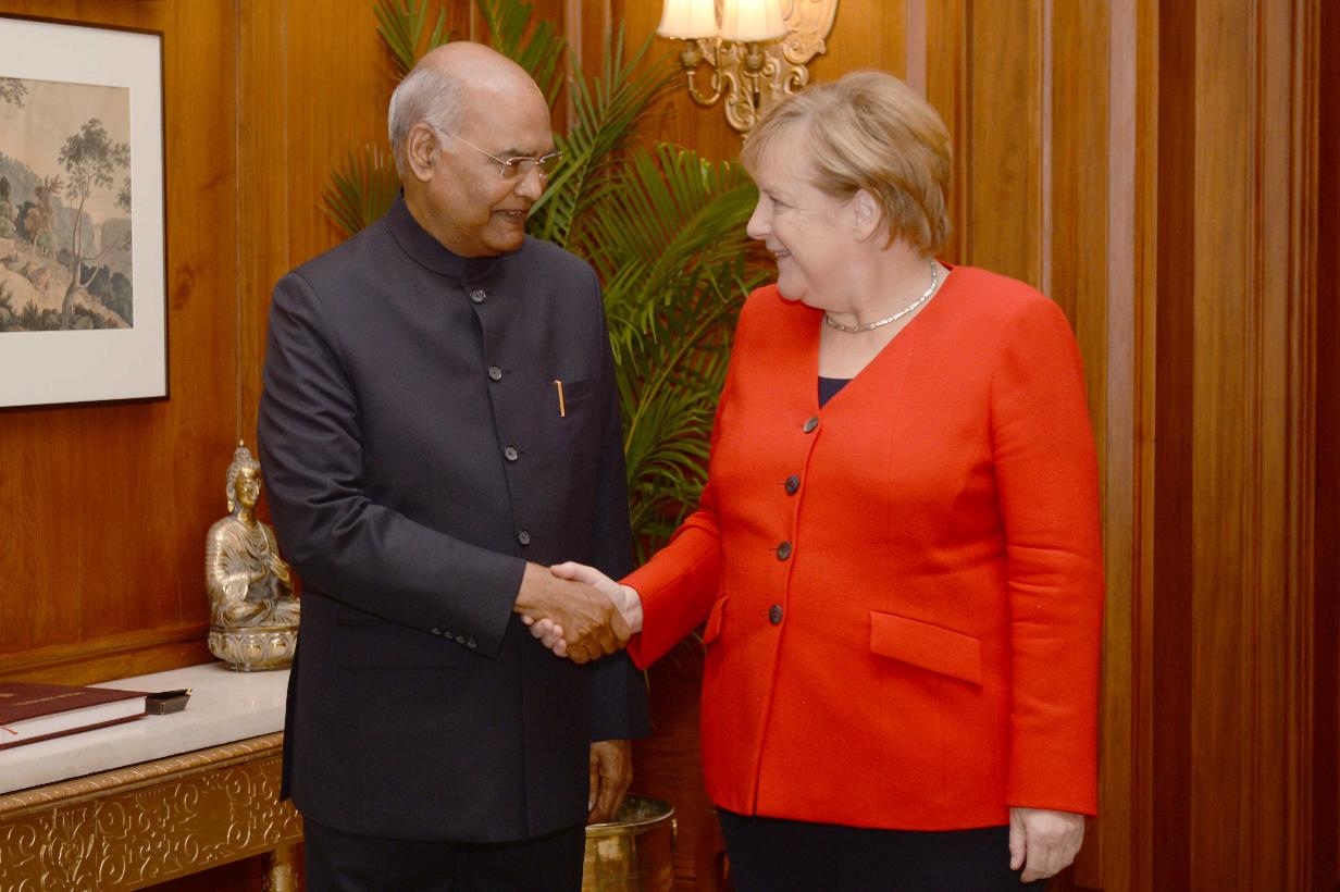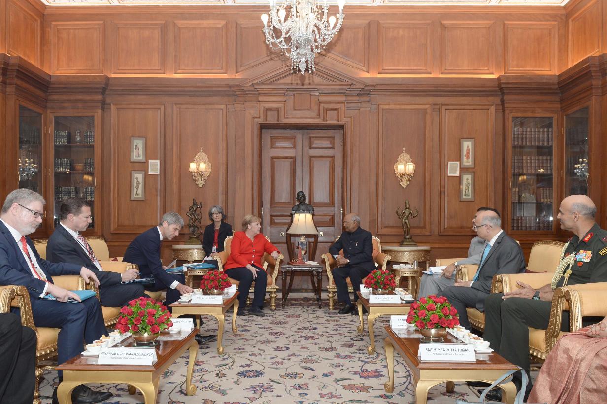 | Caption: | The Chancellor of the Federal Republic of Germany, H.E. Dr. Angela Merkel calling on the President of India, Shri Ram Nath Kovind, at Rashtrapati Bhavan on November 01, 2019. |