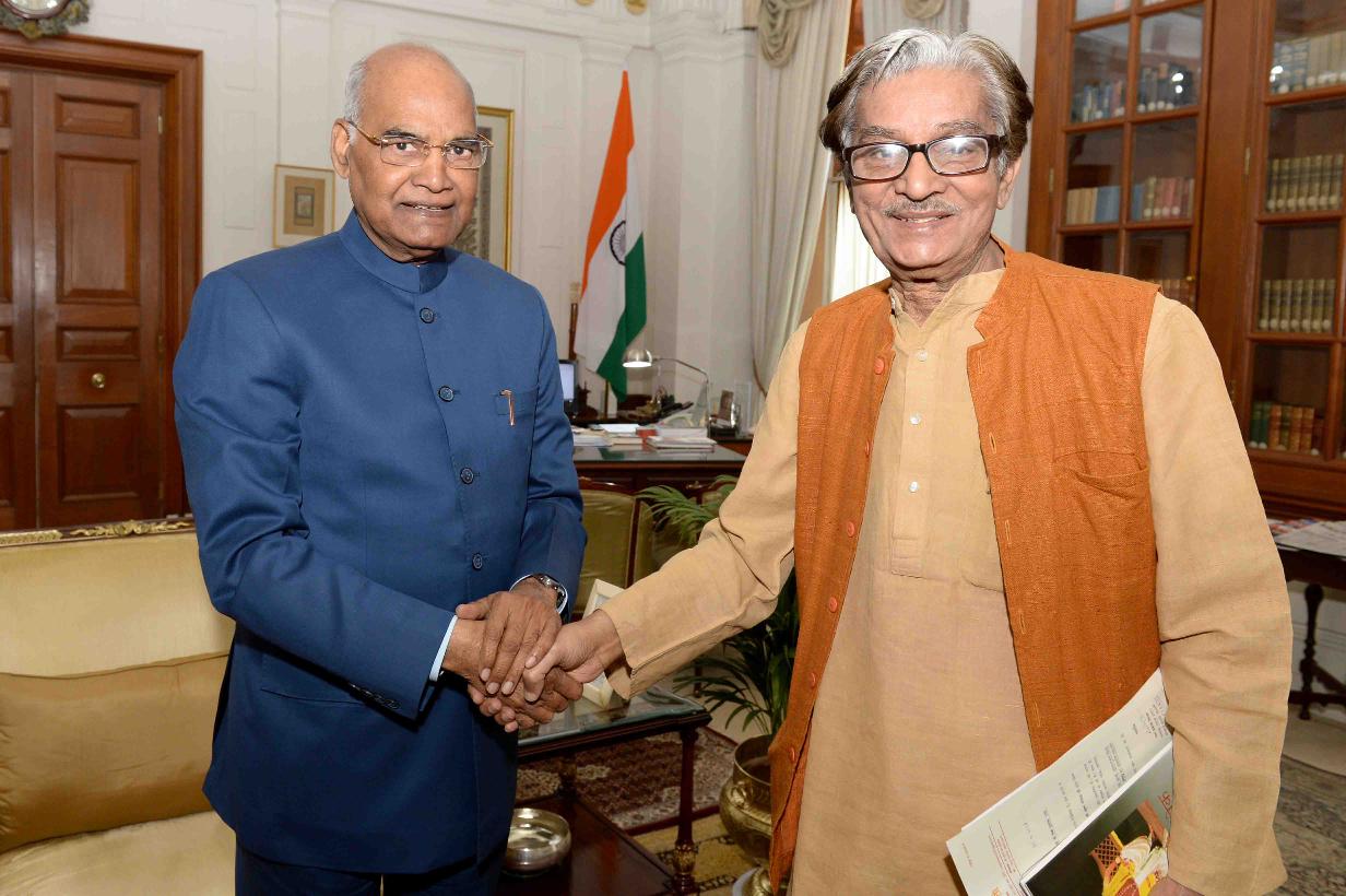 | Caption: | Shri D.P. Sinha from Sanskar Bharti meeting with the President of India, Shri Ram Nath Kovind, at Rashtrapati Bhavan on April 25, 2018. |
