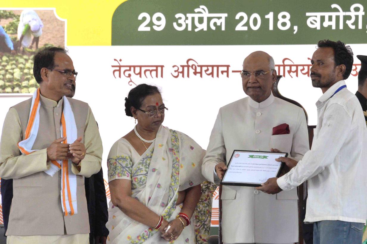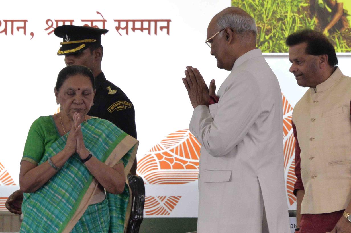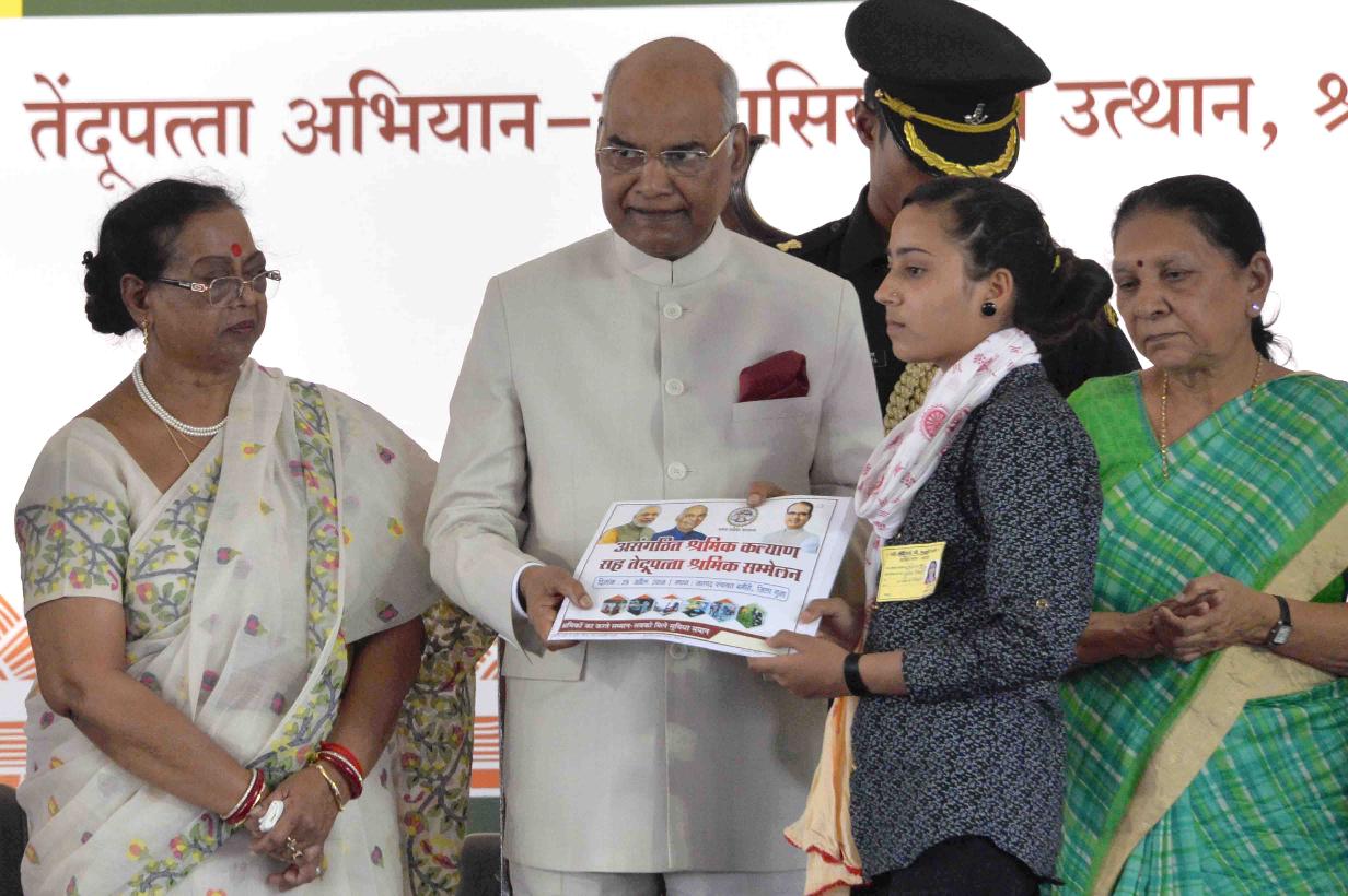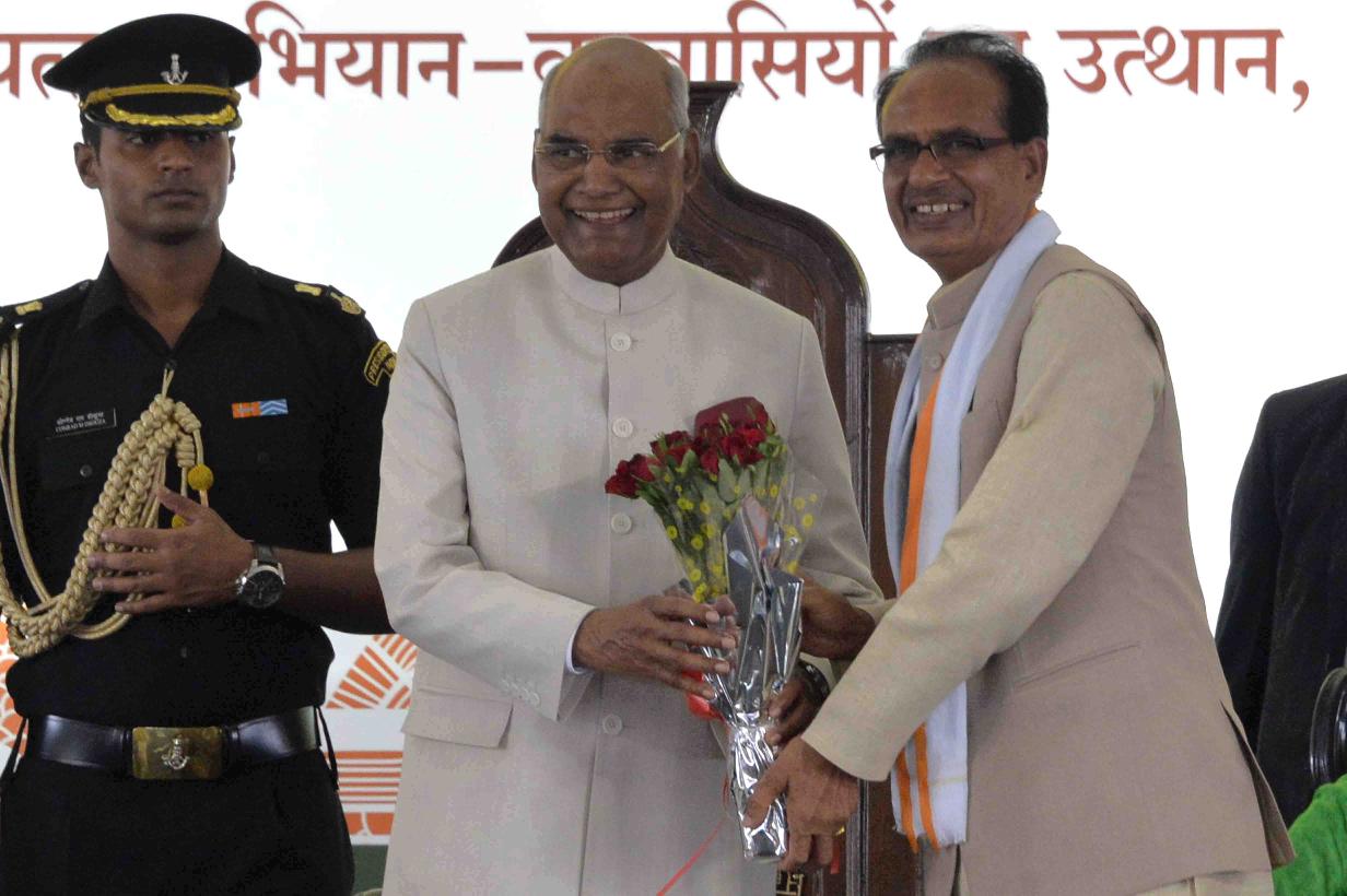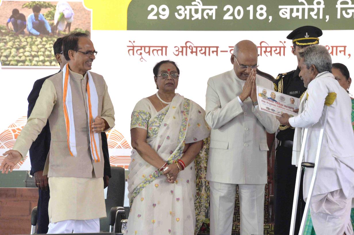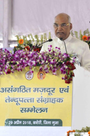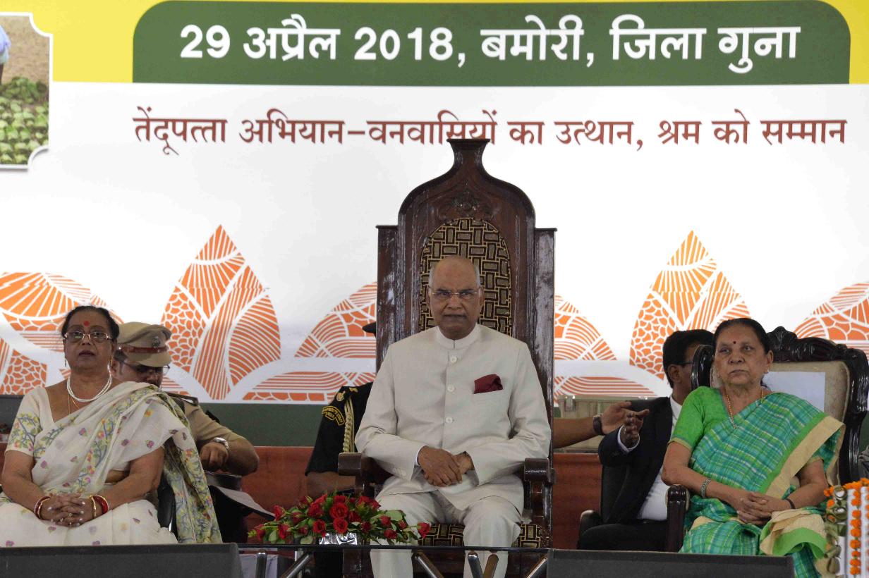 | Caption: | The President of India, Shri Ram Nath Kovind gracing the function Asangathit Shramik Sammelan , organised by the Government of Madhya Pradesh, at Guna, in Madhya Pradesh on April 29, 2018. |