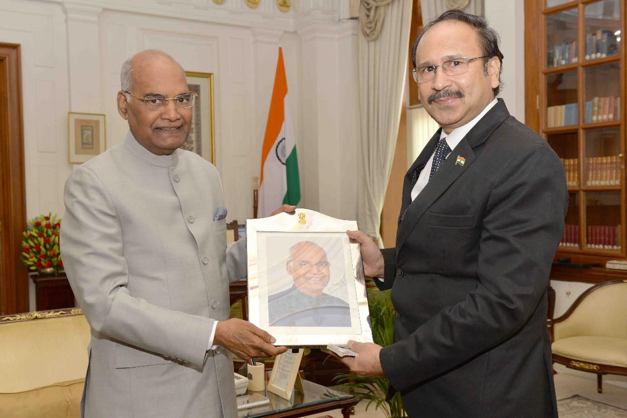 | Caption: | The Ambassador-designate of India to Angola, Shri Srikumar Menon meeting with the President of India, Shri Ram Nath Kovind, at Rashtrapati Bhavan on April 26, 2018. |