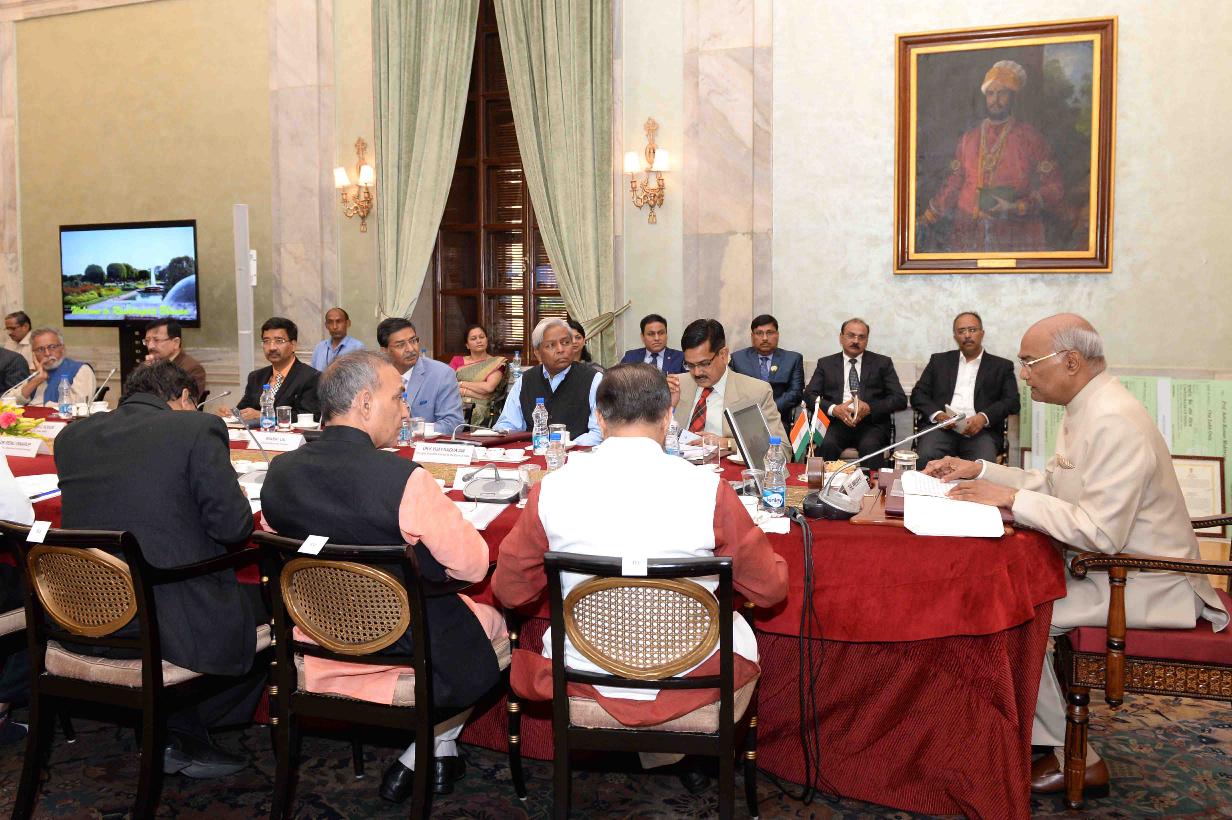 | Caption: | The President of India, Shri Ram Nath Kovind addressing the meeting of Vice Chancellors of Central Universities, at Rashtrapati Bhavan on May 02, 2018. |