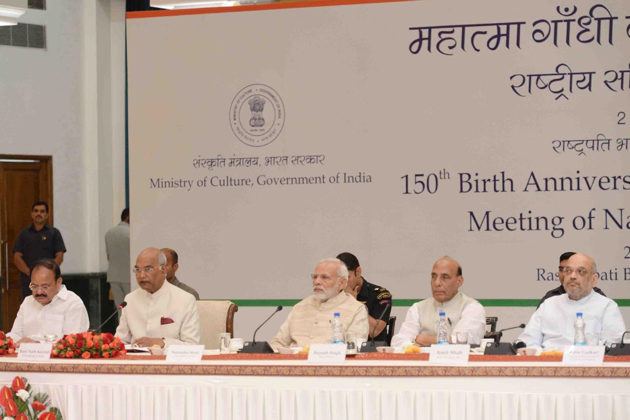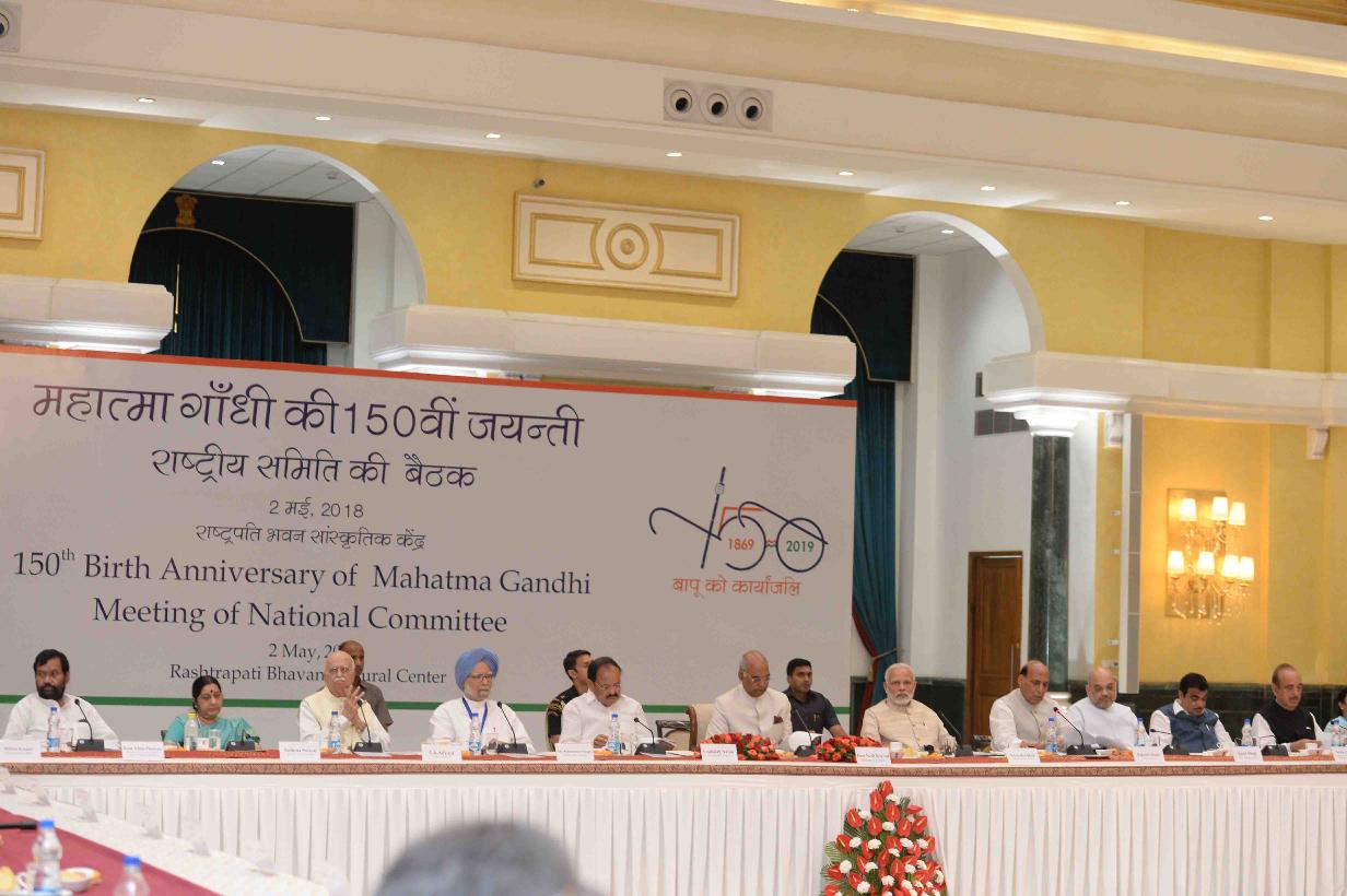 | Caption: | The President of India, Shri Ram Nath Kovind chairing the first meeting of the National Committee for Commemoration of 150th Birth Anniversary of Mahatma Gandhi, at Rashtrapati Bhavan Cultural Centre on May 02, 2018. |