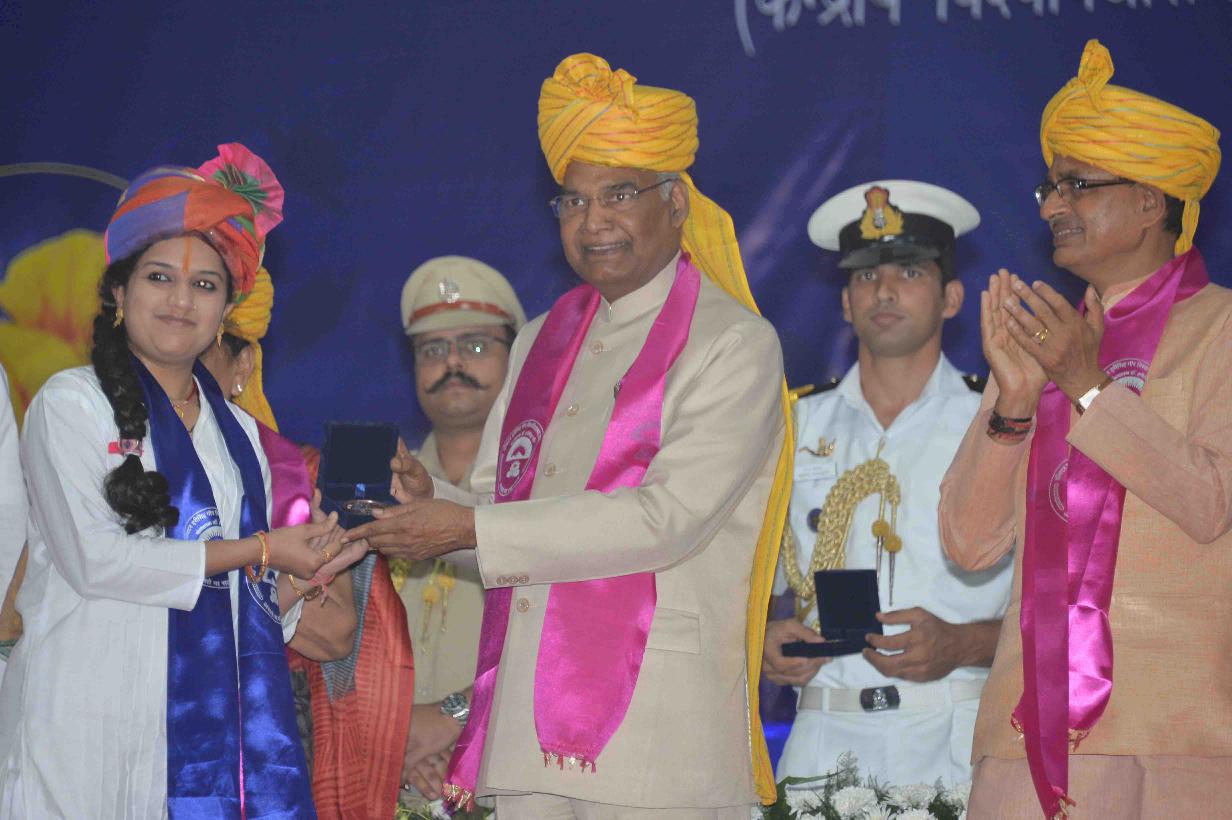 | Caption: | The President of India, Shri Ram Nath Kovind addressing the 27th Convocation of Dr. Harisingh Gour Vishwavidyalaya and presenting medals to the students, at Sagar, in Madhya Pradesh on April 28, 2018. |