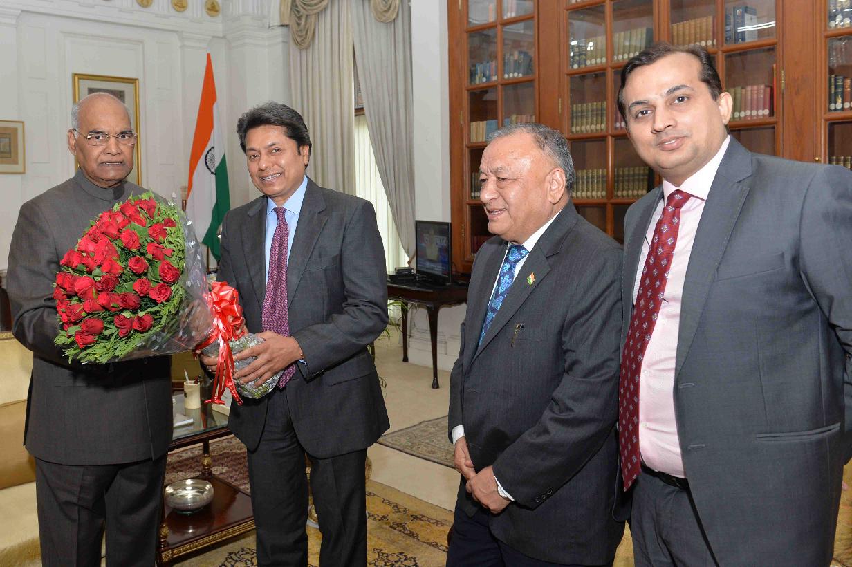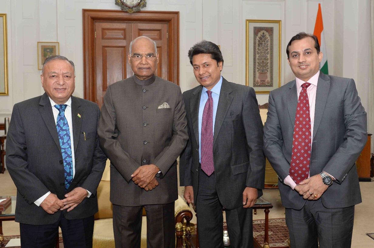 | Caption: | Shri Sandeep Jajodia, President along with Shri R.N. Dhoot, MP (RS) & Past President, ASSOCHAM and Shri D.S. Rawat, Secretary General, ASSOCHAM meeting with the President of India, Shri Ram Nath Kovind, at Rashtrapati Bhavan on May 07, 2018. |