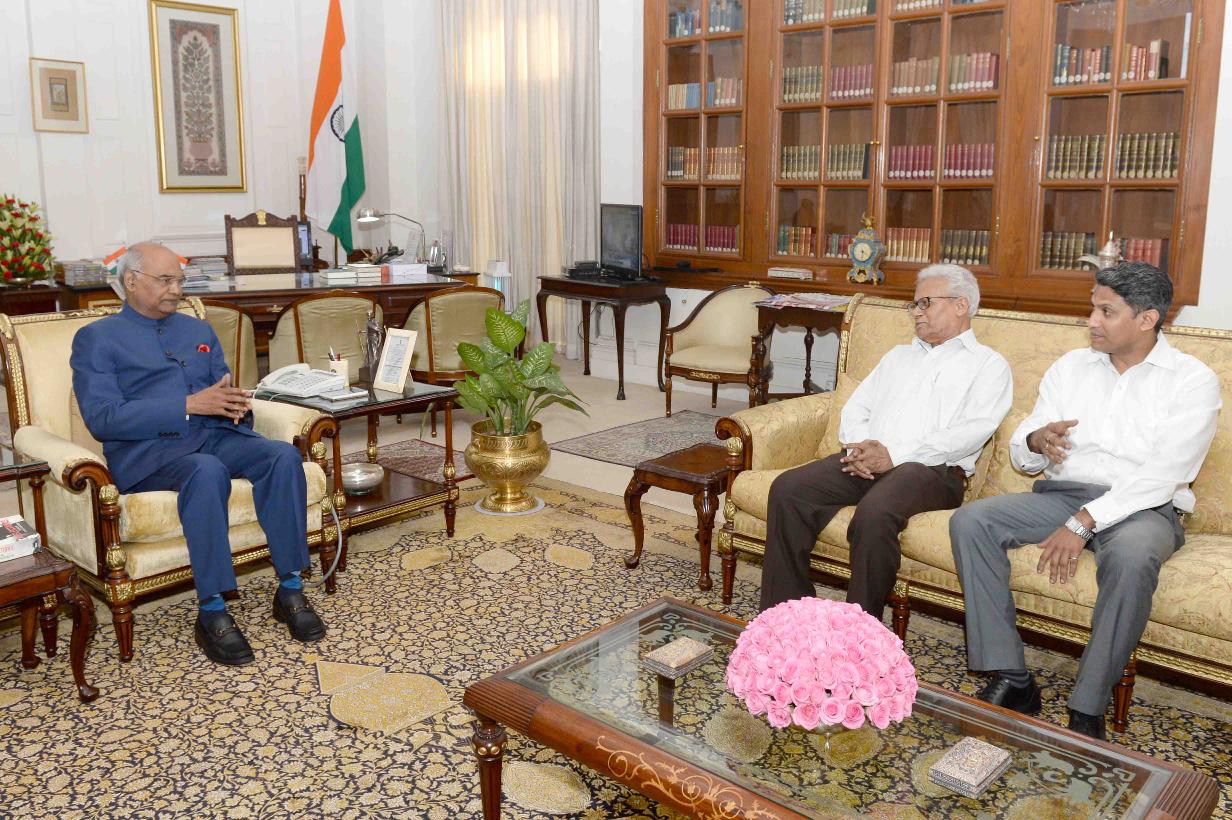 | Caption: | Shri B.S. Banerjee alongwith his son Shri Saurav Banerjee meeting with the President of India, Shri Ram Nath Kovind, at Rashtrapati Bhavan on May 01, 2018. |