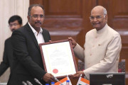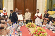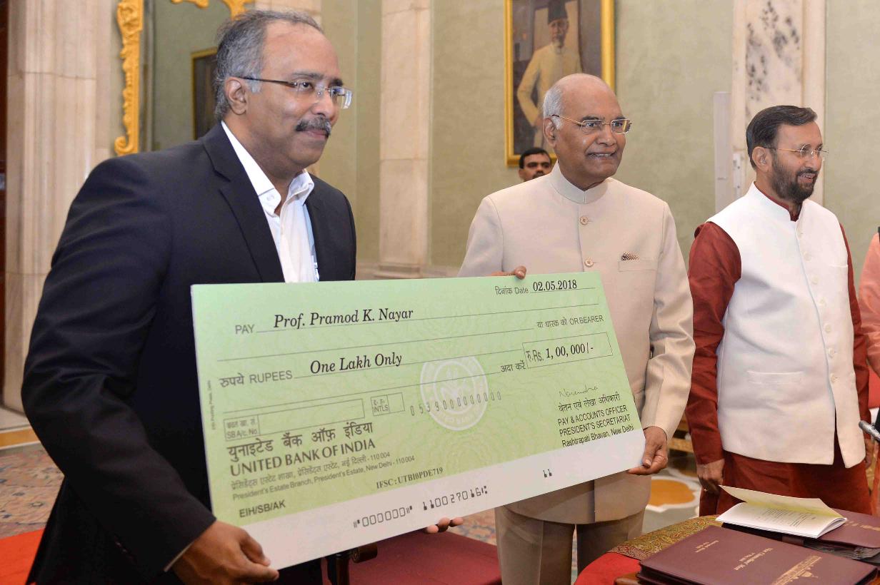 | Caption: | The President of India, Shri Ram Nath Kovind presenting the Visitor s Award to Prof. Pramod K. Nayar, University of Hyderabad for research in the field of Humanities, Arts and Social Science, during the meeting of Vice Chancellors of Central Universities, at Rashtrapati Bhavan on May 02, 2018. |