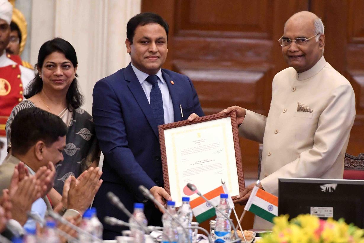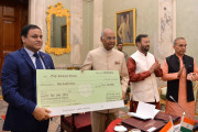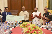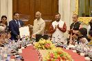 | Caption: | The President of India, Shri Ram Nath Kovind presenting the Visitor s Award to Prof. Ashwani Pareek, Jawaharlal Nehru University, Delhi for Technology Development, during the meeting of Vice Chancellors of Central Universities, at Rashtrapati Bhavan on May 02, 2018. |