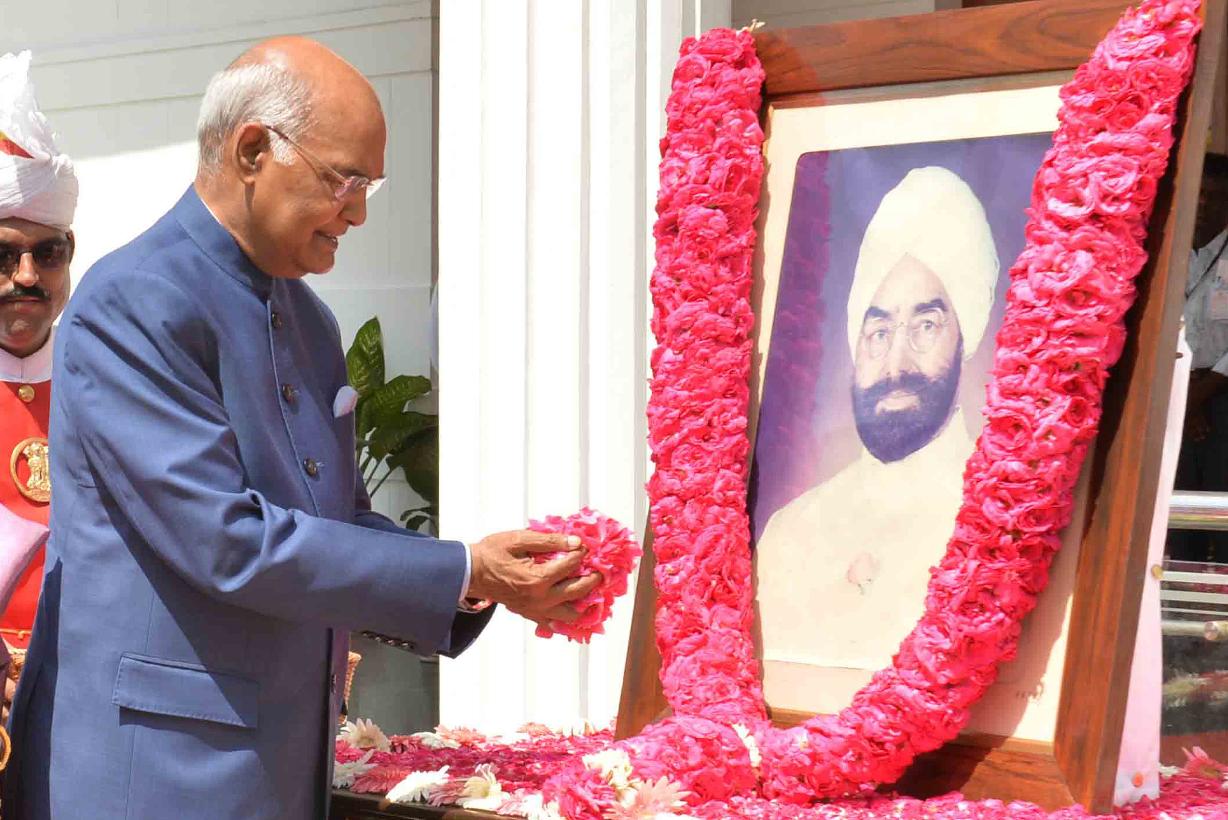 | Caption: | The President of India, Shri Ram Nath Kovind paying floral tributes to Shri Giani Zail Singh, former President of India, on the occasion of his Birth Anniversary, at Raj Bhavan, in Chennai on May 05, 2018. |
