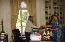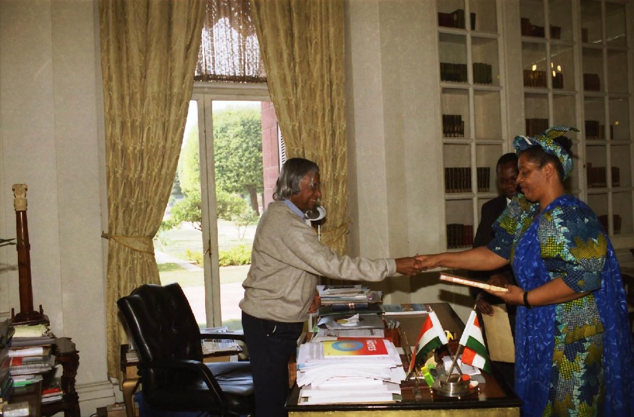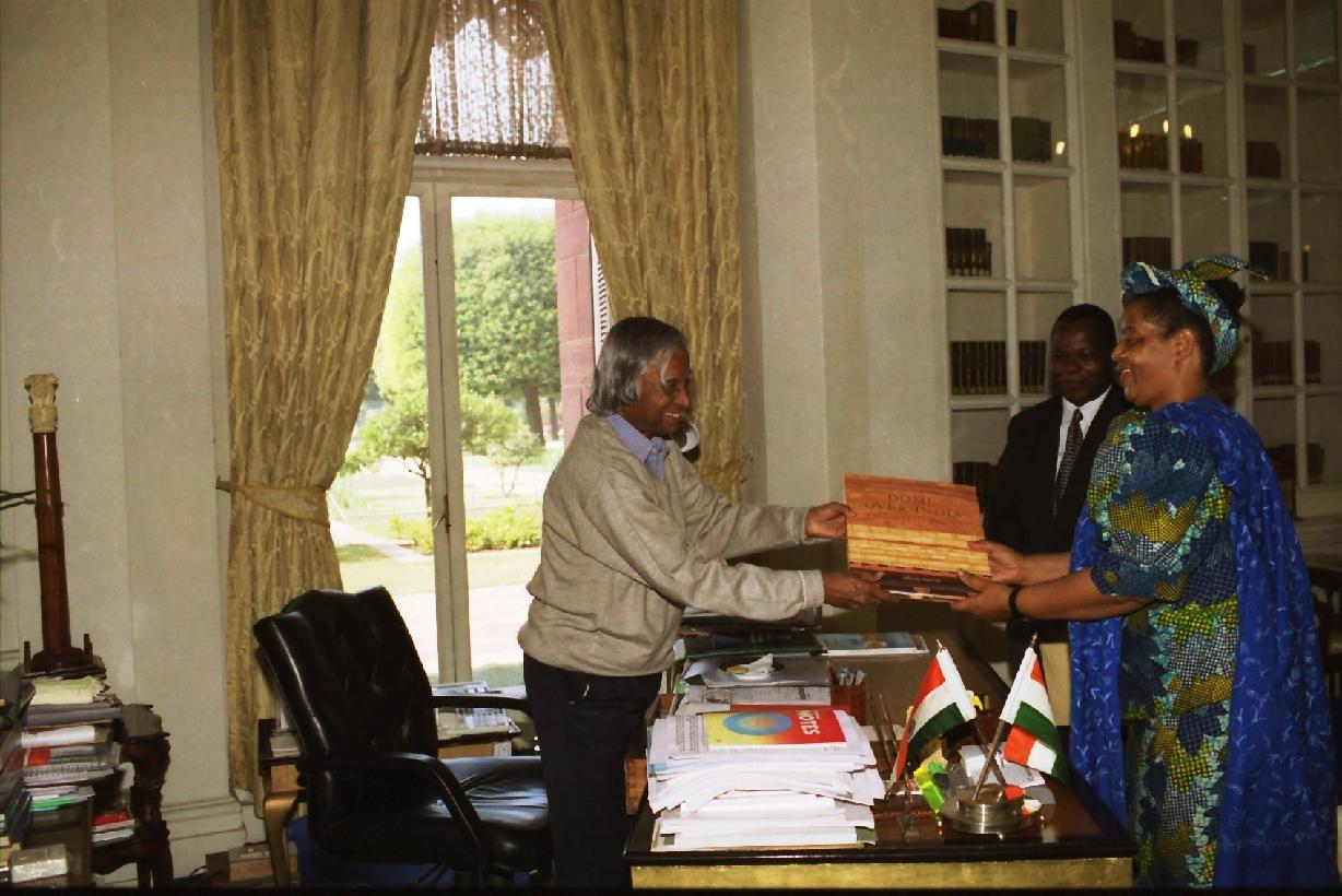 | Caption: | The President of India, Dr A P J Abdul Kalam at the Farewell call by the High Commissioner of Zimbabwe to India, HE MS Lucia Muvingi at Rashtrapati Bhavan in New Delhi on Nov 29, 2002 |
