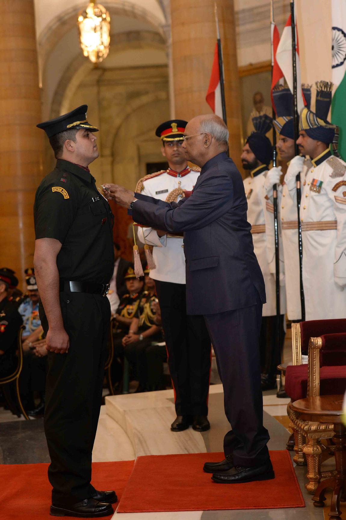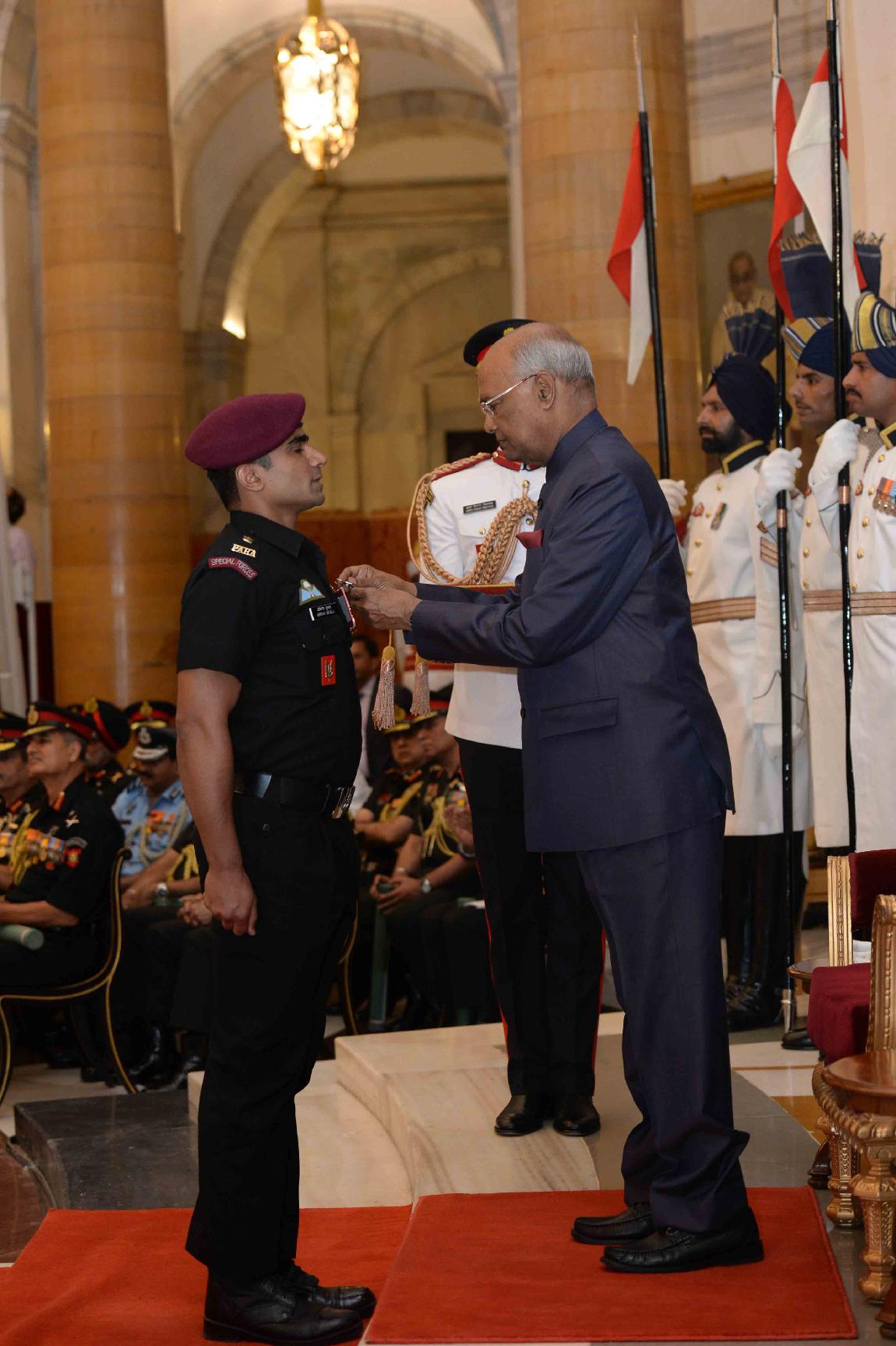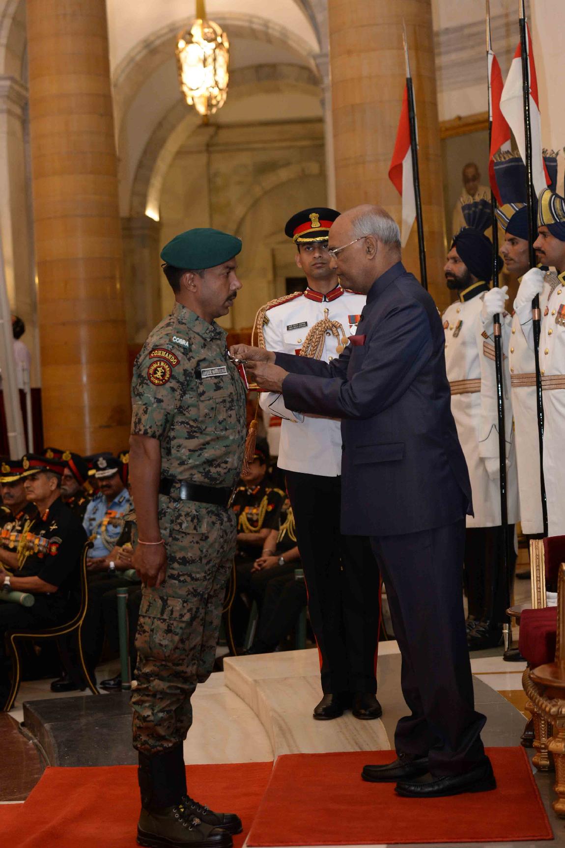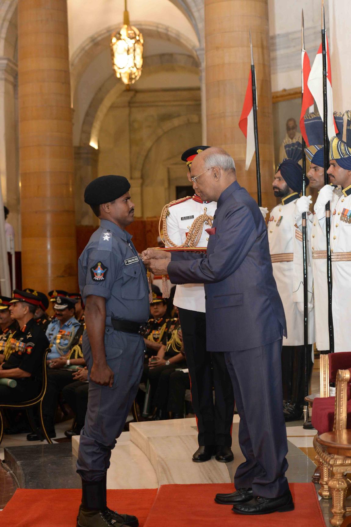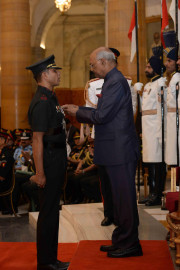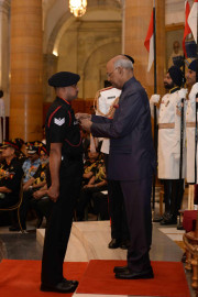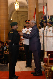 | Caption: | The President of India, Shri Ram Nath Kovind presenting the Gallantry Awards and Distinguished Service Decorations, at the Defence Investiture Ceremony, at Rashtrapati Bhavan on March 27, 2018. |
