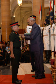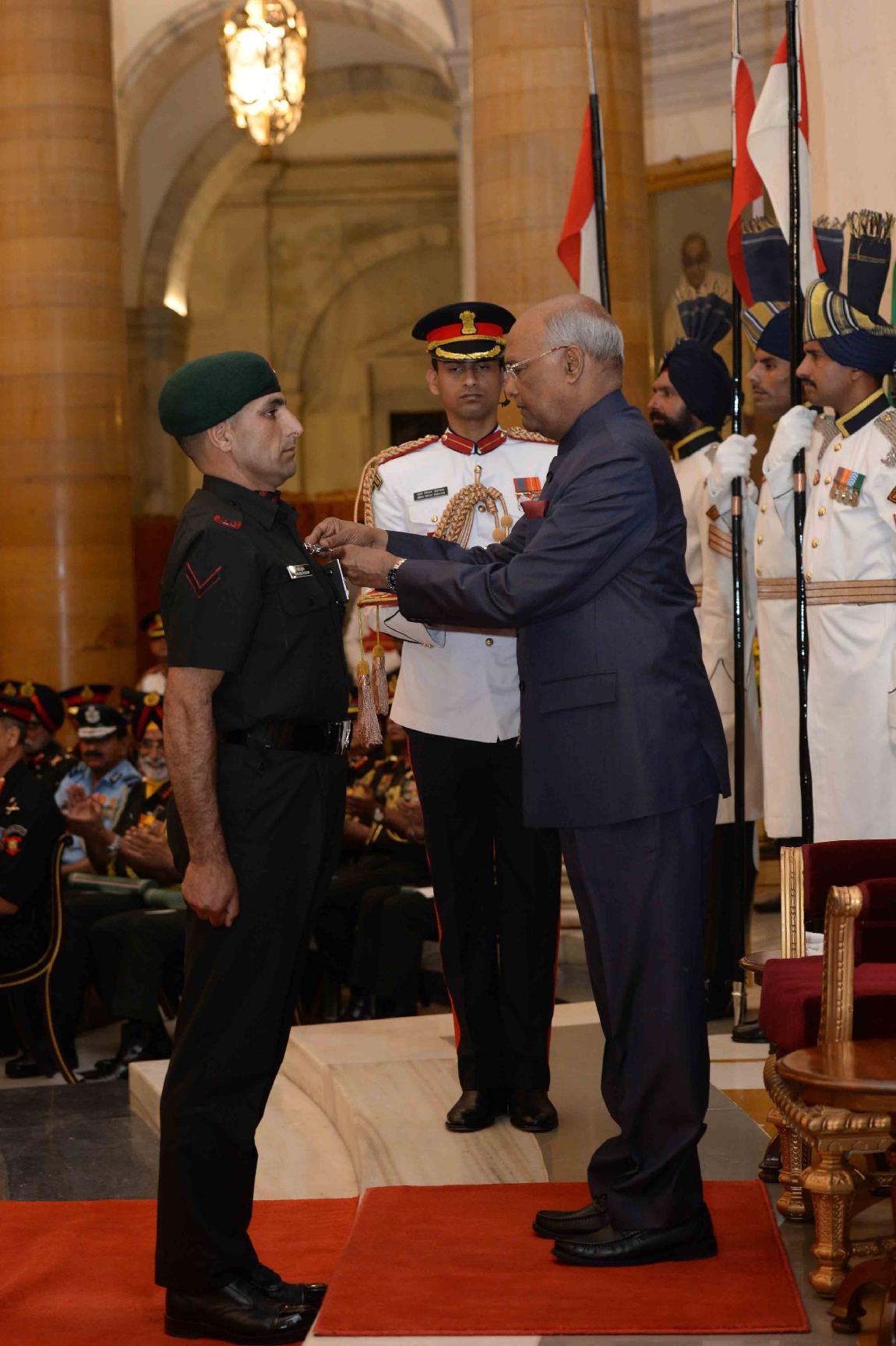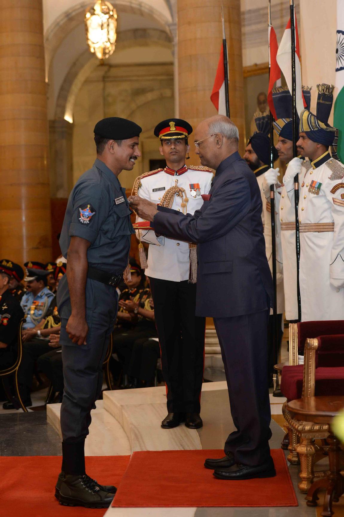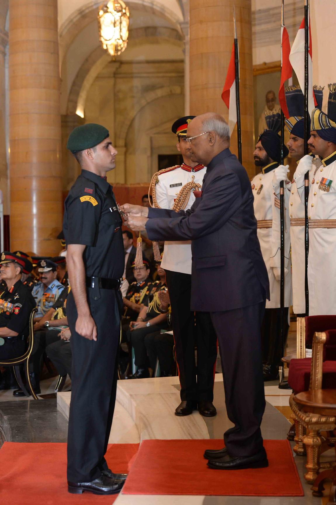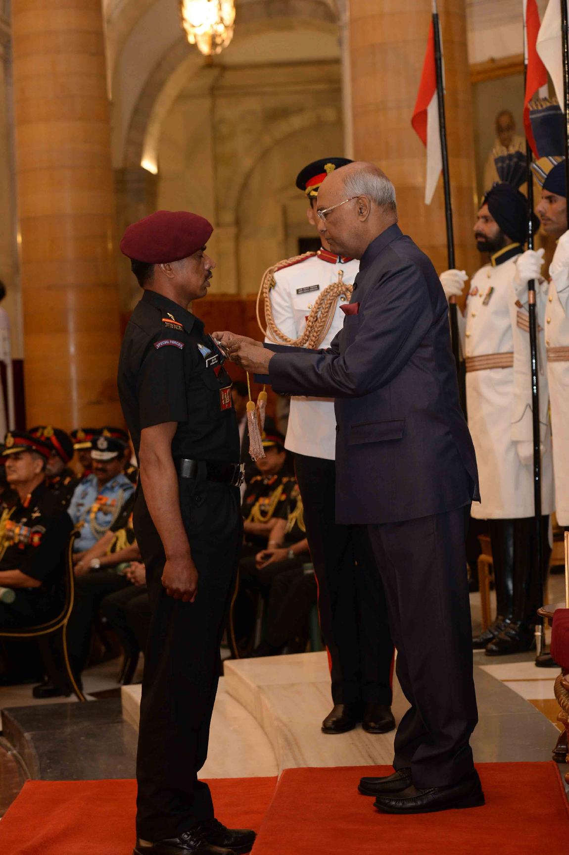 | Caption: | The President of India, Shri Ram Nath Kovind presenting the Gallantry Awards and Distinguished Service Decorations, at the Defence Investiture Ceremony, at Rashtrapati Bhavan on March 27, 2018. |