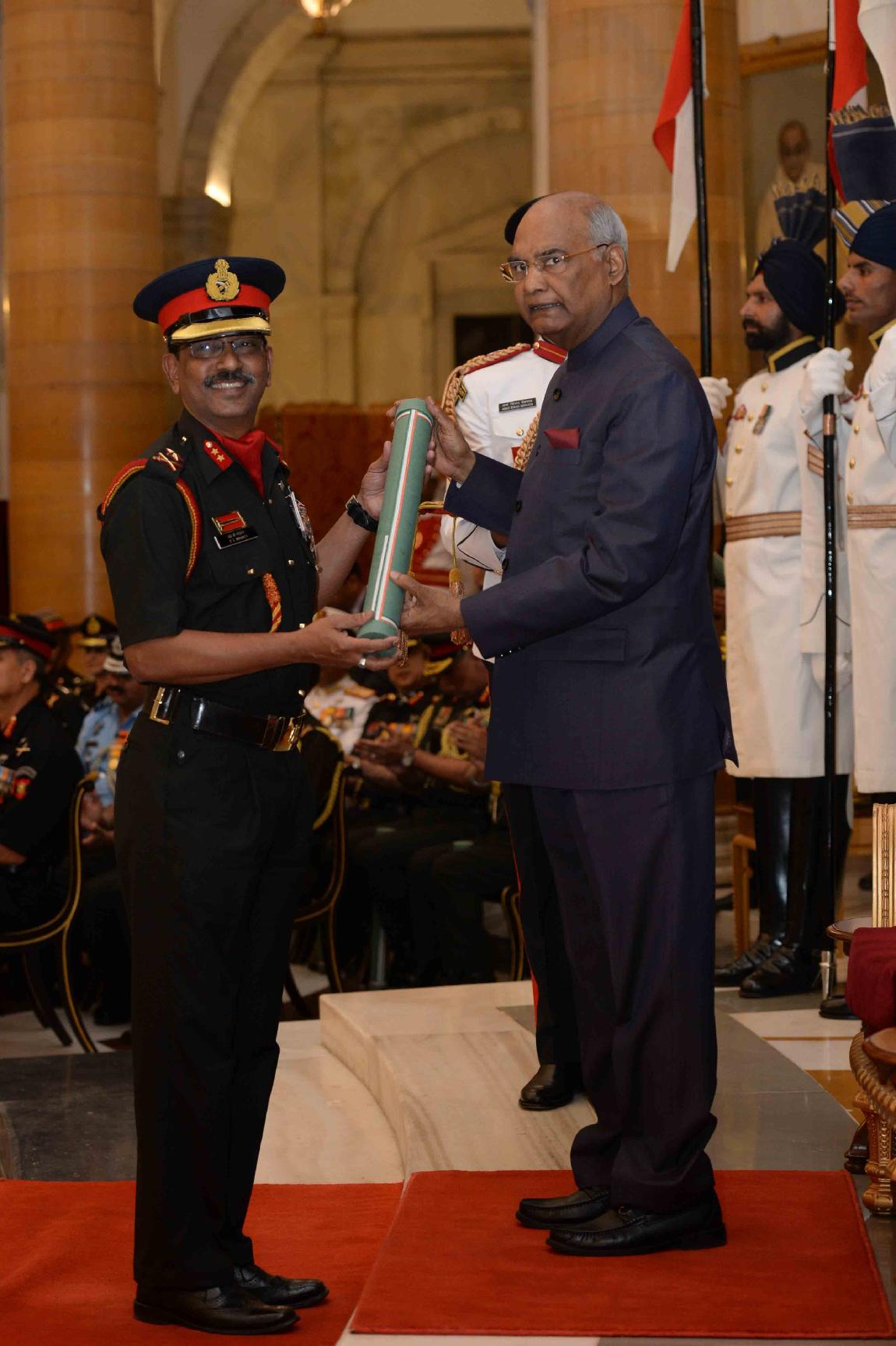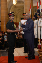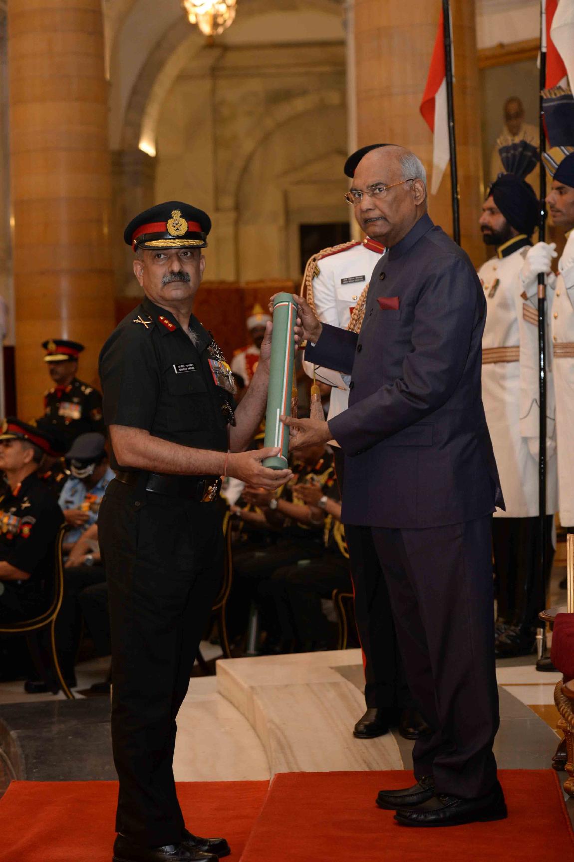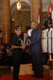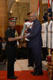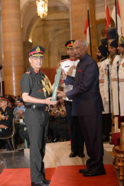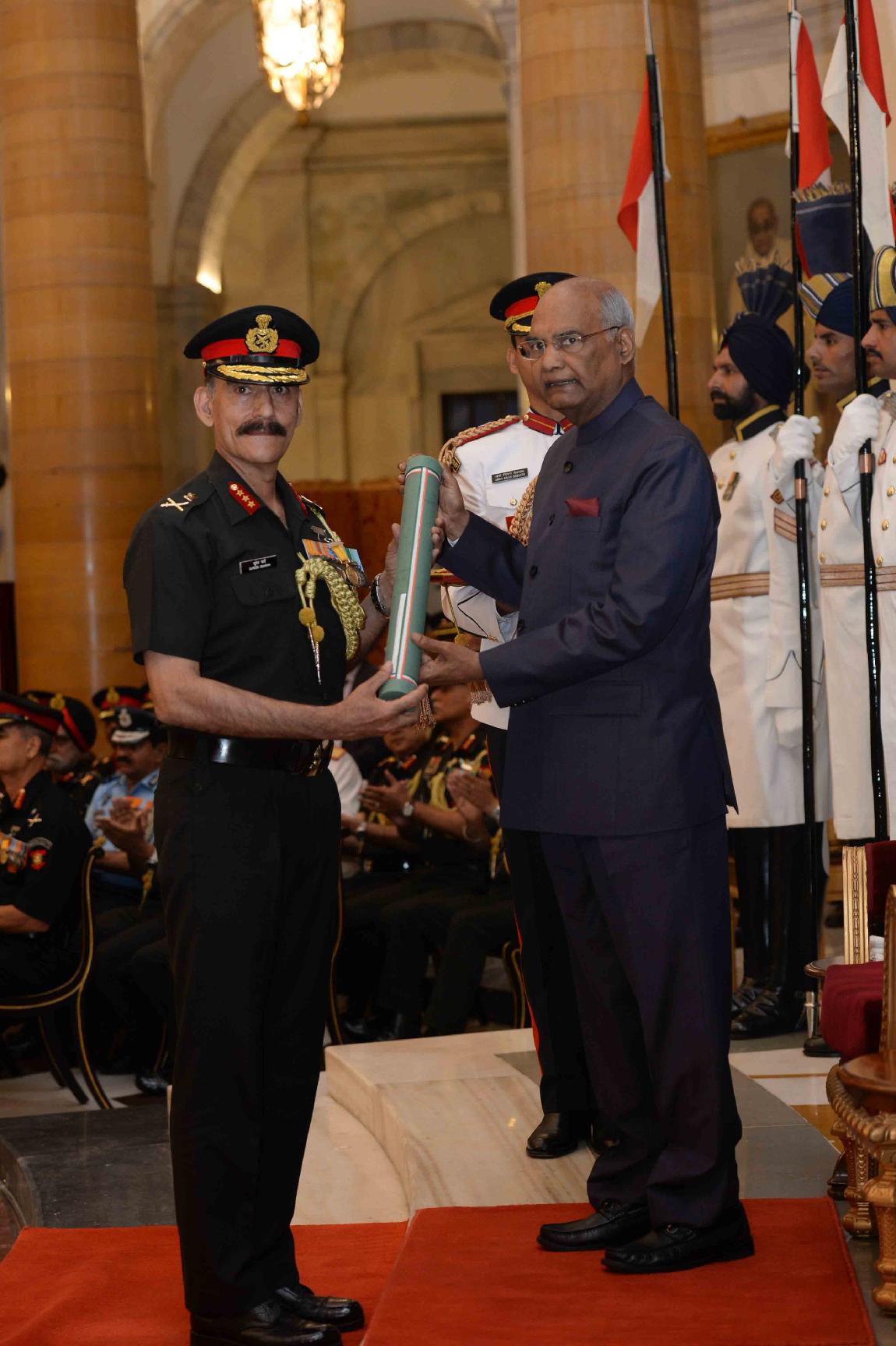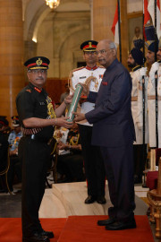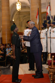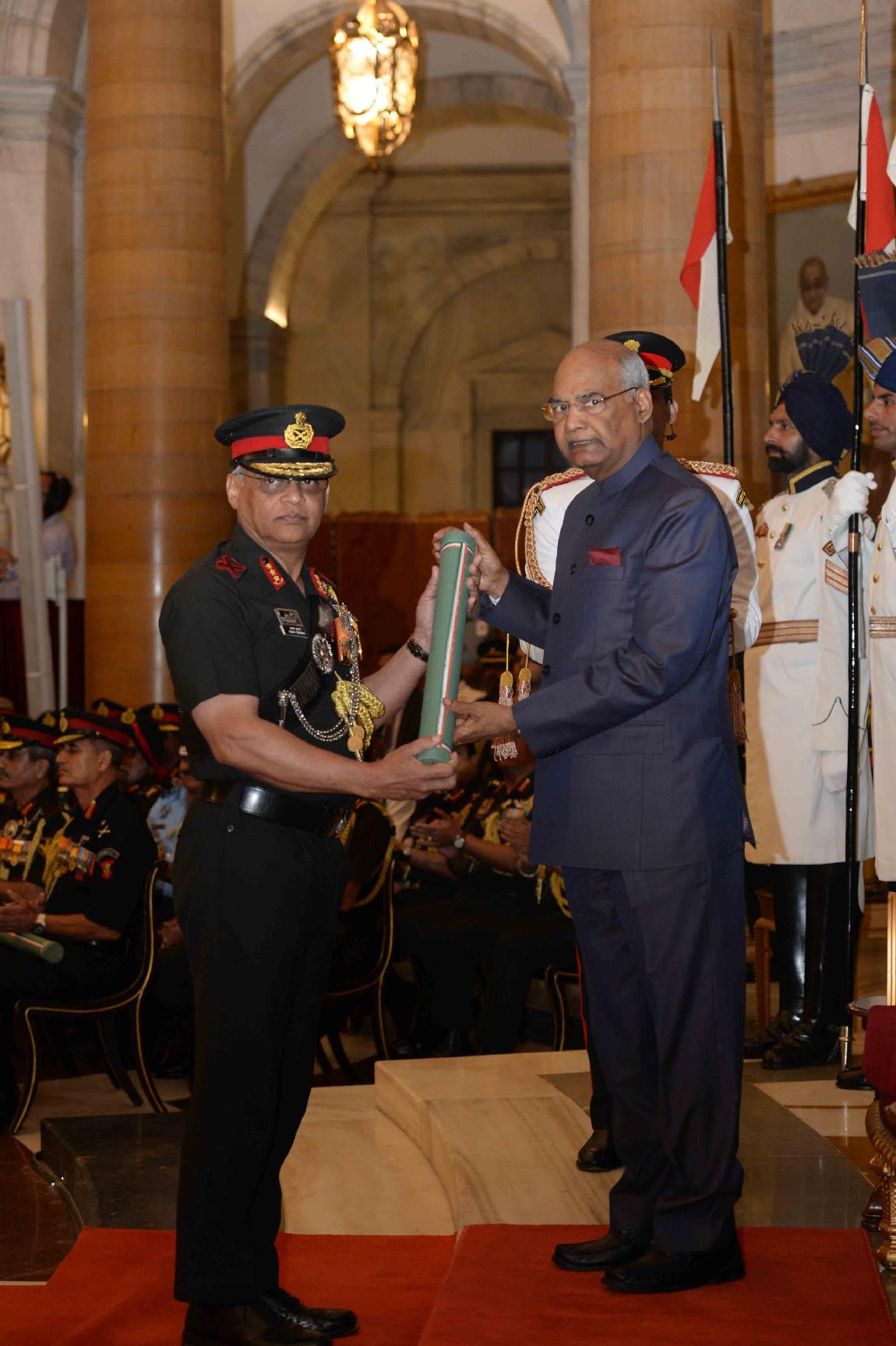 | Caption: | The President of India, Shri Ram Nath Kovind presenting the Gallantry Awards and Distinguished Service Decorations, at the Defence Investiture Ceremony, at Rashtrapati Bhavan on March 27, 2018. |
