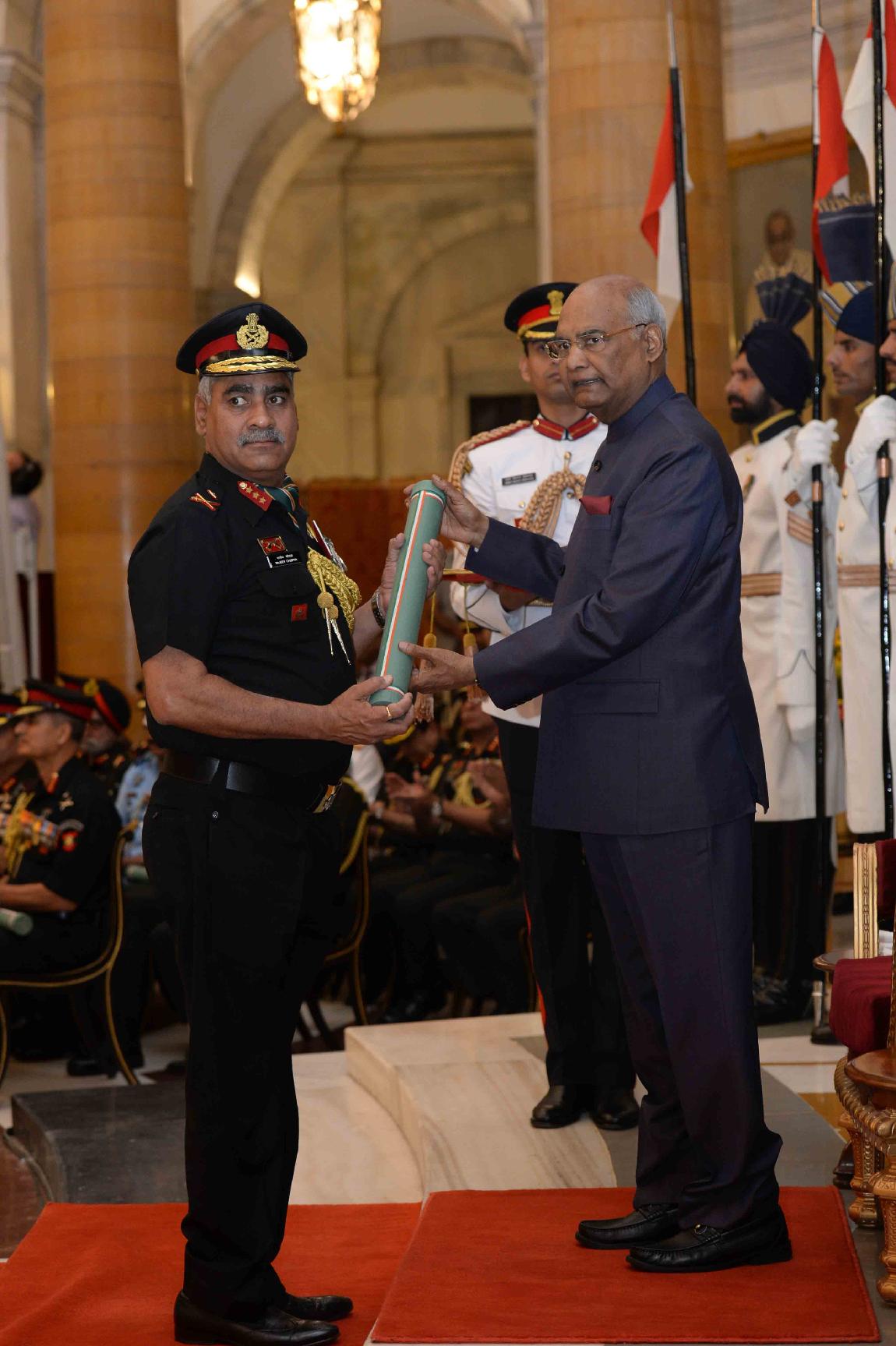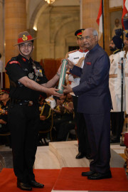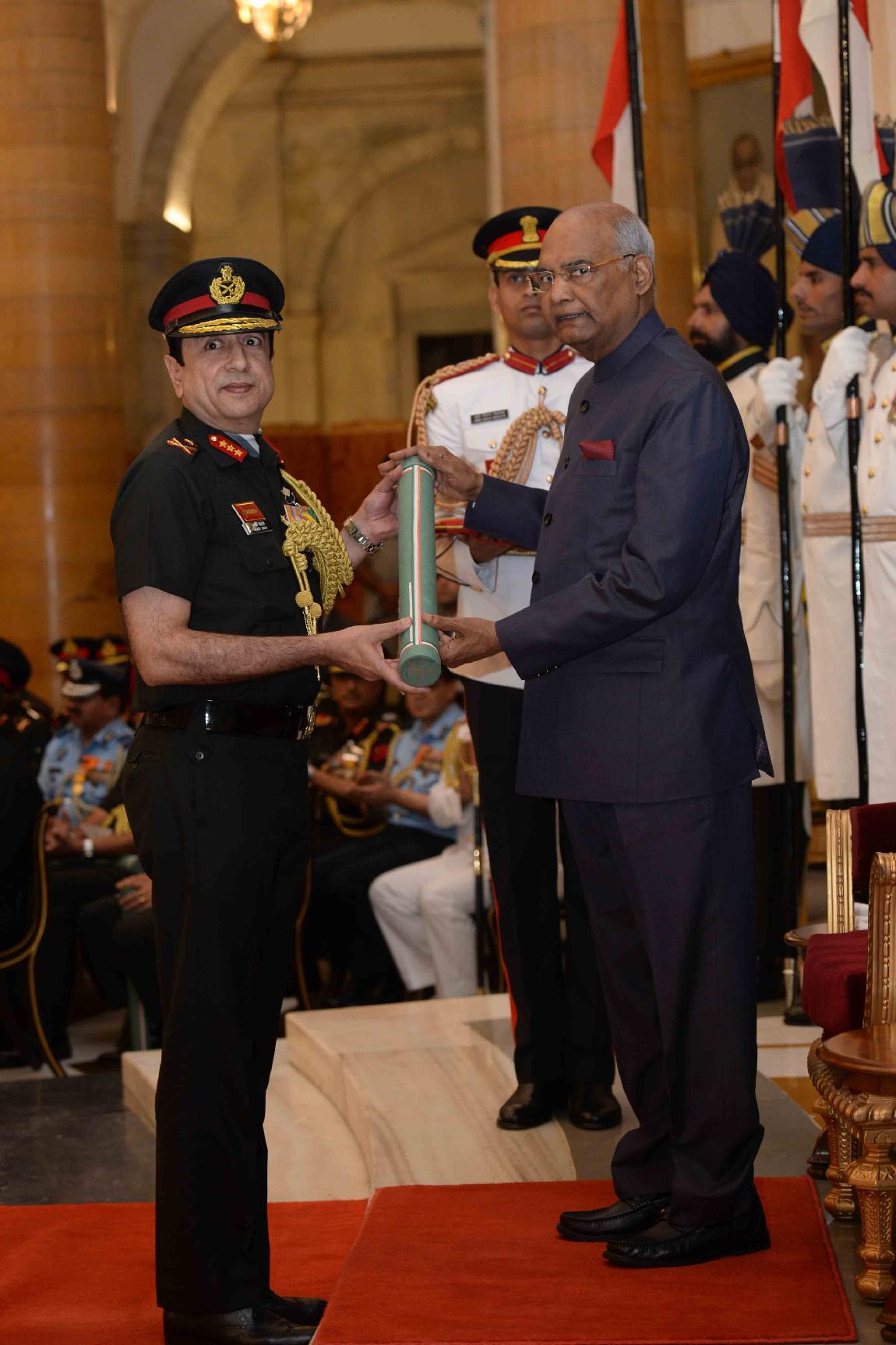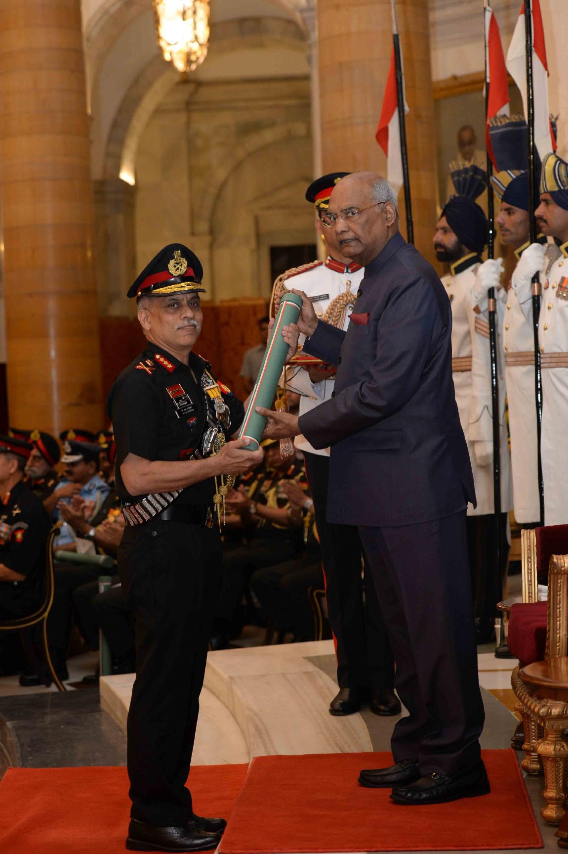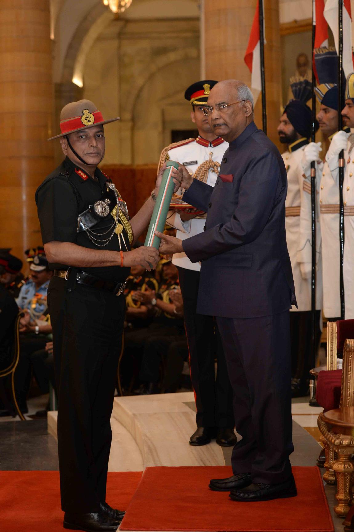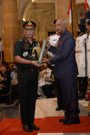 | Caption: | The President of India, Shri Ram Nath Kovind presenting the Gallantry Awards and Distinguished Service Decorations, at the Defence Investiture Ceremony, at Rashtrapati Bhavan on March 27, 2018. |