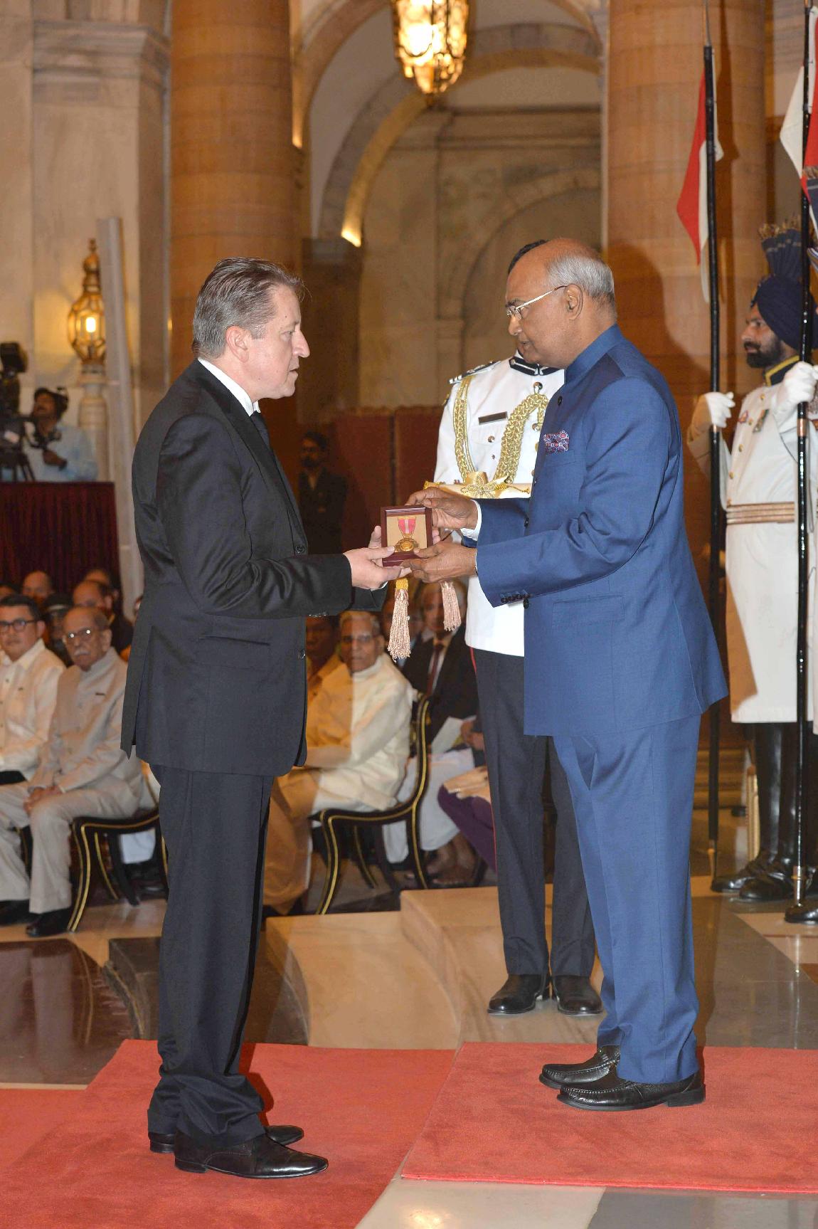 | Caption: | The President of India, Shri Ram Nath Kovind presenting the Padma Bhushan awards, at Civil Investiture Ceremony II, at Rashtrapati Bhavan on April 02, 2018. |