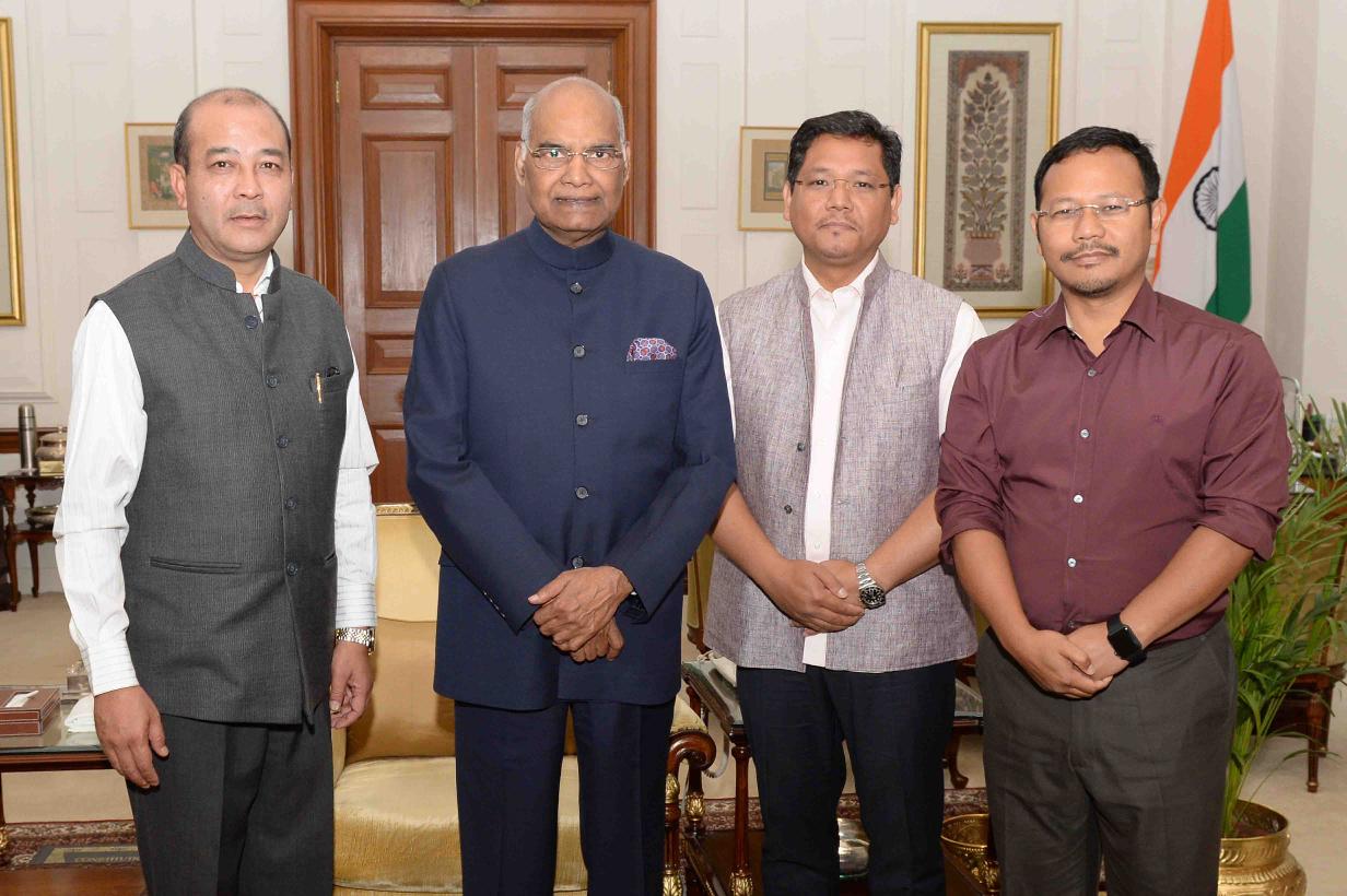 | Caption: | The Chief Minister of Meghalaya, Shri Conrad Kongkal Sangma with others meeting with the President of India, Shri Ram Nath Kovind, at Rashtrapati Bhavan on April 03, 2018. |