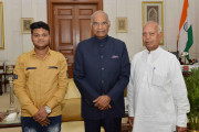 | Caption: | Shri Satyanarayan Pawar, Ex-MP along with his grandson Shri Prateek Pawar meeting with the President of India, Shri Ram Nath Kovind, at Rashtrapati Bhavan on April 03, 2018. |
