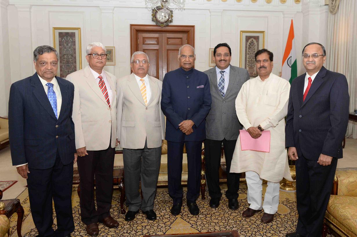 | Caption: | Shri Suresh Chanbasappa Angadi, MP (LS) with others meeting with the President of India, Shri Ram Nath Kovind, at Rashtrapati Bhavan on April 03, 2018. |