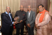 | Caption: | Dr. P.N. Dixit with others meeting with the President of India, Shri Ram Nath Kovind, at Rashtrapati Bhavan on January 18, 2018. |