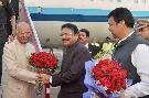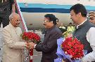 | Caption: | The President of India, Shri Ram Nath Kovind being received by the Governor, Maharashtra, Shri C. Vidyasagar Rao and the Chief Minister, Maharashtra, Shri Devendra Fadnavis, on his arrival, at Mumbai on May 14, 2018. |
