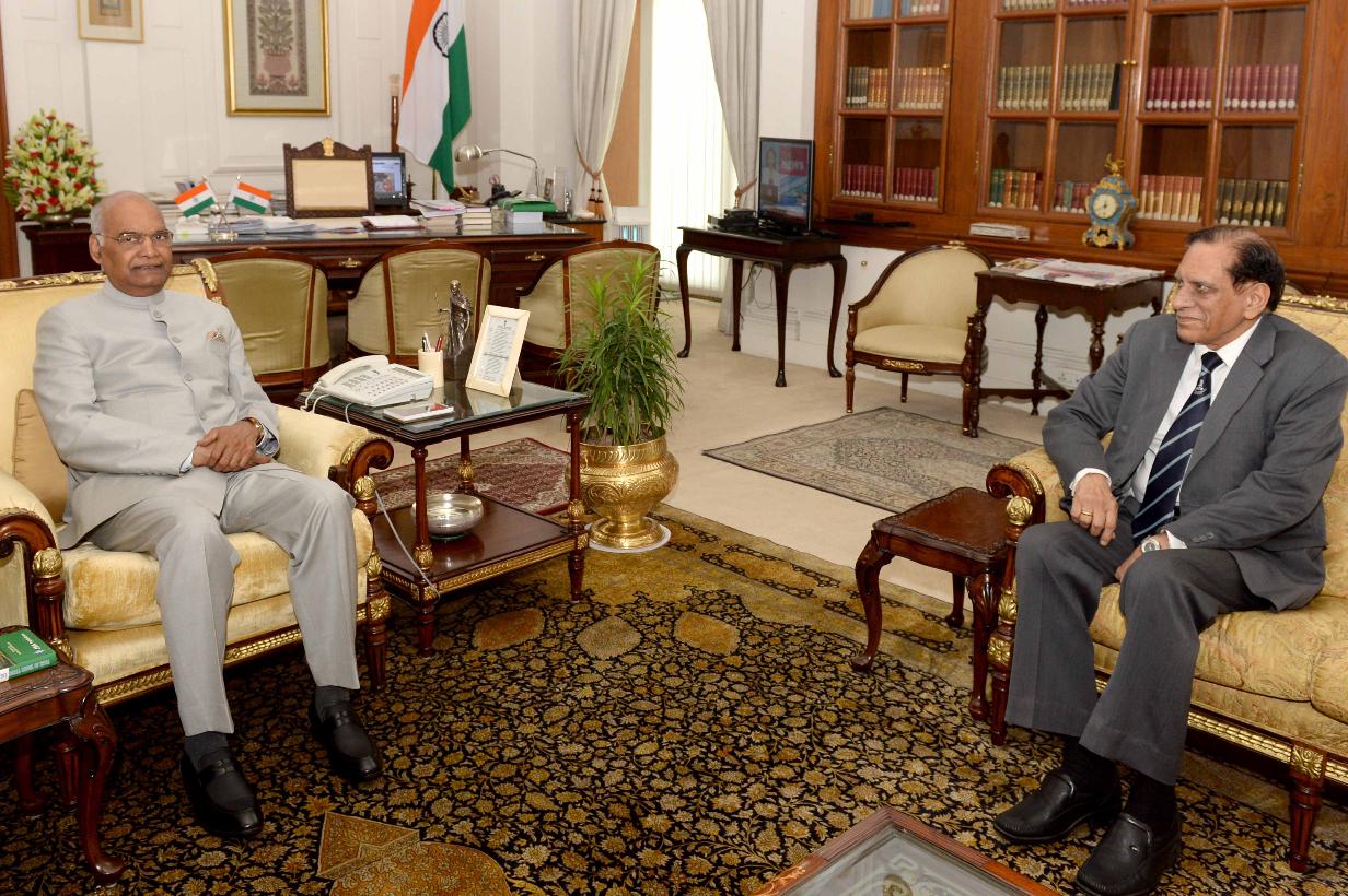 | Caption: | Air Marshal (Retd.) R.C. Bajpayee meeting with the President of India, Shri Ram Nath Kovind, at Rashtrapati Bhavan on June 02, 2018. |