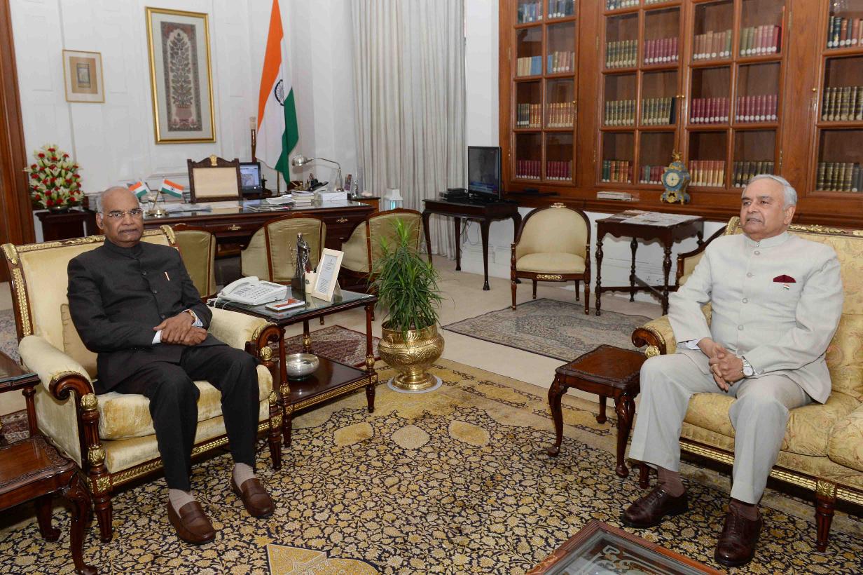 | Caption: | The Governor of Mizoram, Lt. Gen. Nirbhay Sharma (Retd) calling on the President of India, Shri Ram Nath Kovind, at Rashtrapati Bhavan on May 17, 2018. |